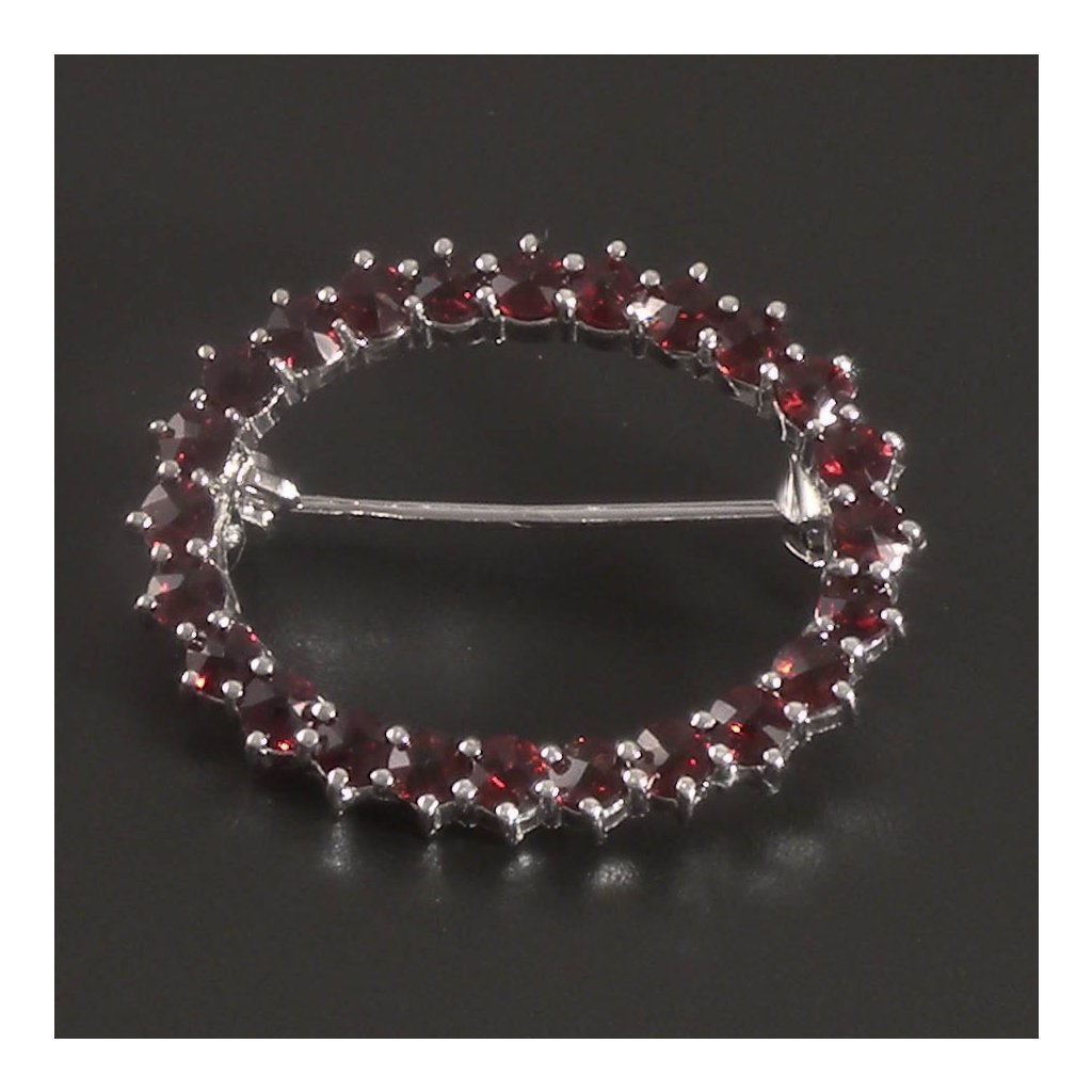 Stříbrná brož s granáty v elegantním oválném designu je dokonalou ukázkou klasického stylu s noblesním nádechem. Každý granát je pečlivě zasazen tak, aby zachytil co nejvíce světla a vytvořil dokonalý třpyt. Stříbro ryzosti 925/1000 podtrhuje výraznou červeň kamenů a dodává šperku luxusní vzhled. Díky bezpečnému zapínání se brož pohodlně nosí na saku, šatech či šále.