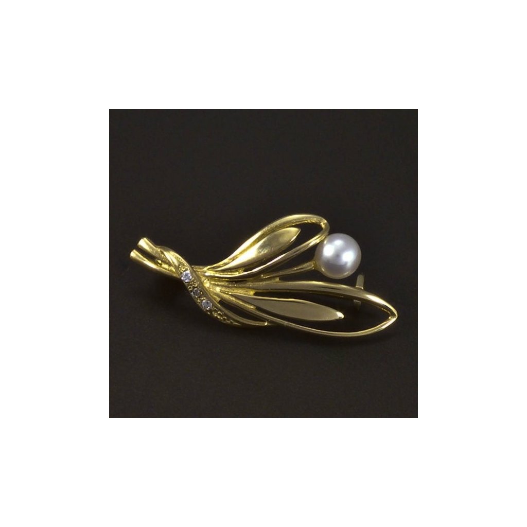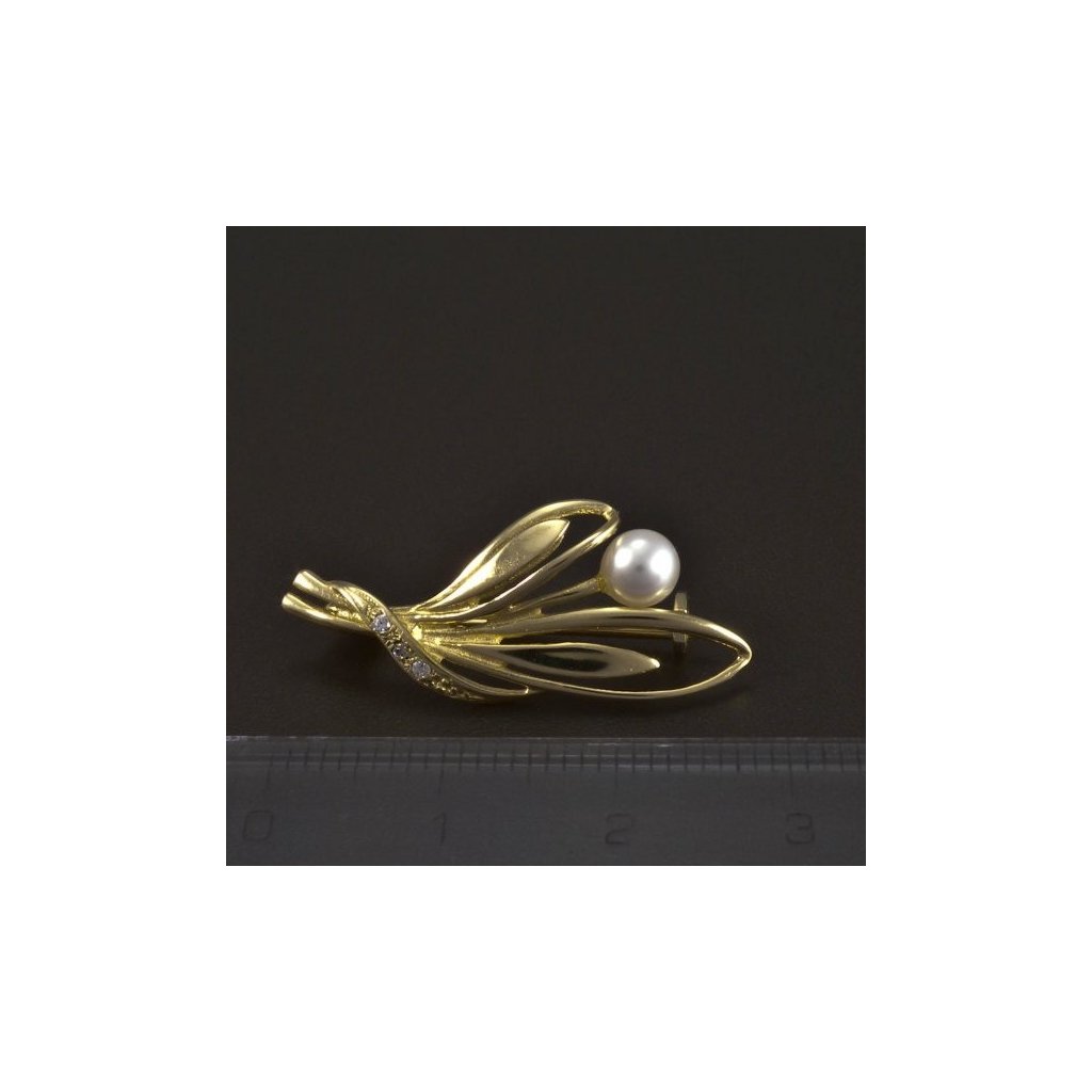 Tato nádherná zlatá brož vyniká svým elegantním designem, který podtrhuje krásná bílá perlička a třpytivé zirkony. Decentní tvar a precizní zpracování dělají z tohoto šperku dokonalý doplněk pro ženy, které milují klasickou eleganci. Brož je ideální k ozdobení kabátu, šátku či společenských šatů a skvěle doplní jak denní, tak slavnostní outfit. Nadčasový kousek, který by neměl chybět v žádné šperkovnici.