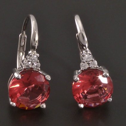 Romantické stříbrné náušnice s růžovým zirkonem a bezpečným patentovým zapínáním.