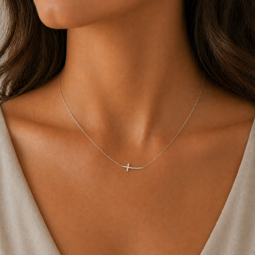 Tento elegantní náhrdelník z bílého zlata (585/1000) je ozdoben přívěskem ve tvaru křížku, který je umístěn horizontálně, což vytváří moderní a stylový vzhled. Díky minimalistickému provedení a použití bílého zlata je snadno kombinovatelný s dalšími šperky. Tento náhrdelník je ideální volbou pro ženy, které si potrpí na decentní a sofistikované doplňky pro každou příležitost.