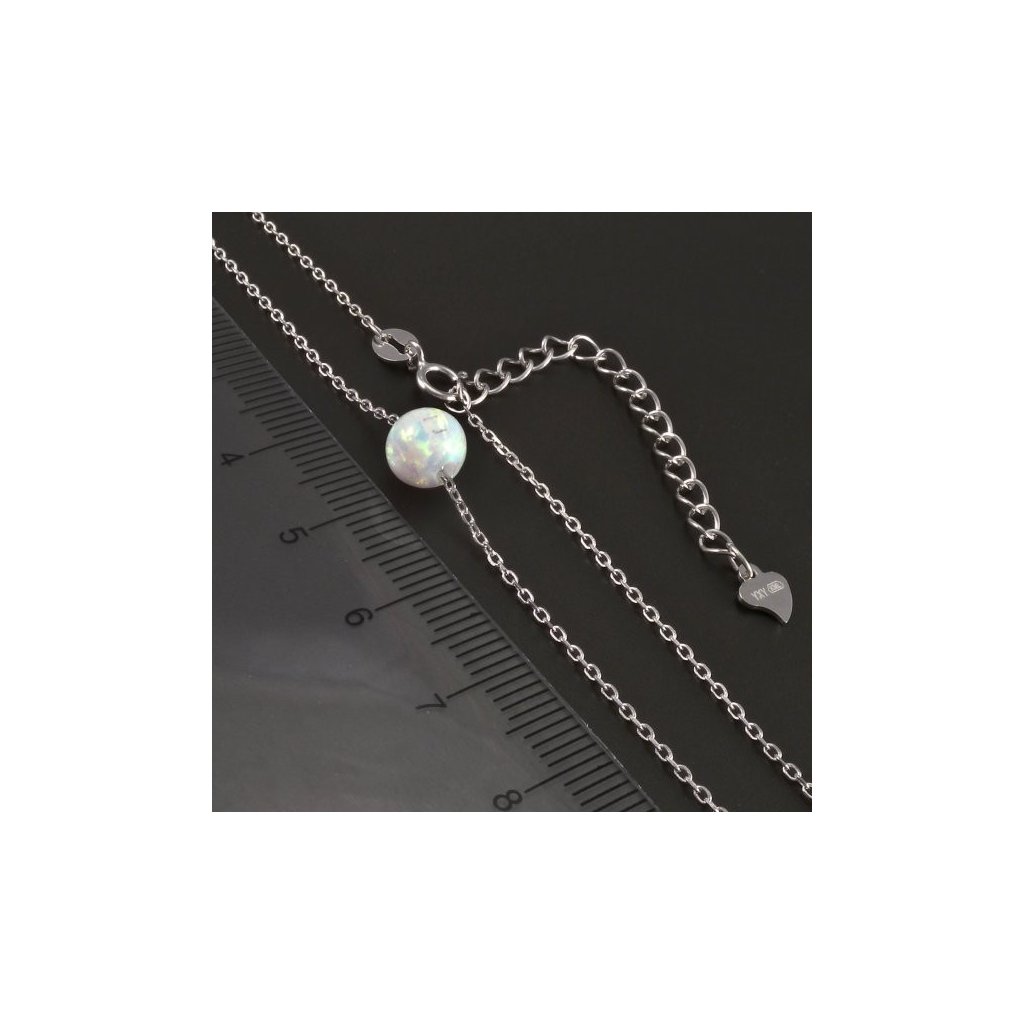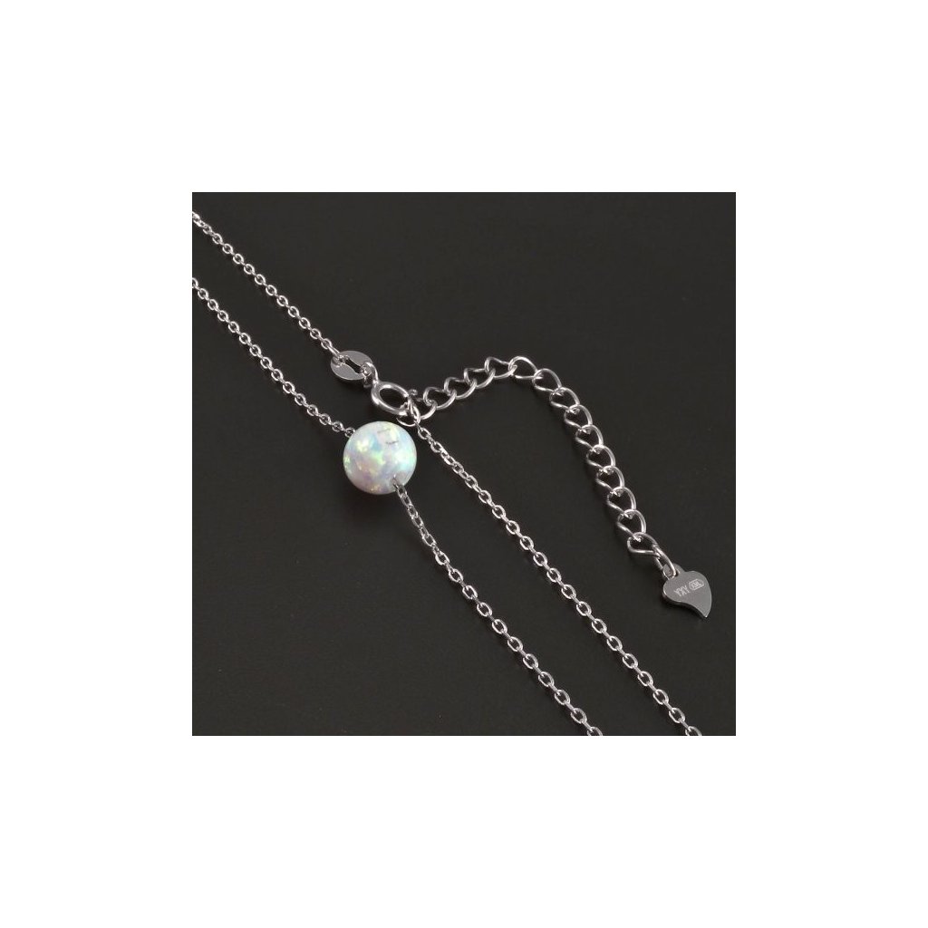 Stříbrný náhrdelník je vyroben ze stříbra ryzosti 925/1000. Náhrdelník tvoří slabý řetízek typu ankr, který zdobí kulička z bílého synt. opálu o průměru 7 mm. Stříbrný náhrdelník má u zapínání prodlužovací řetízek s variabilní délkou 40-45 cm. Náhrdelník je povrchově upraven rhodiem. Jemný stříbrný náhrdelník vhodný pro každý den. Doporučujeme.