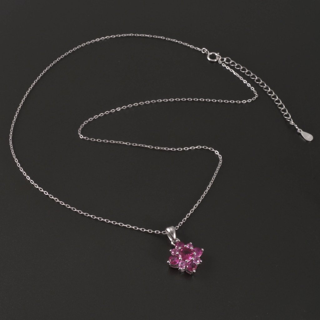 Stříbrný náhrdelník červené a růžové zirkony