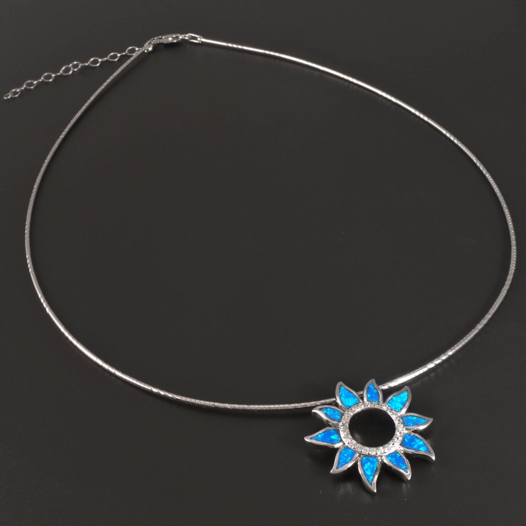 Stříbrný náhrdelník struna ozdoba s modrým opálem