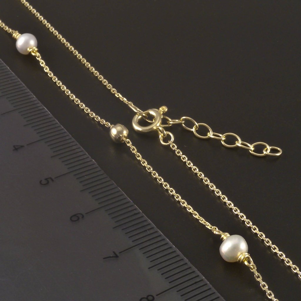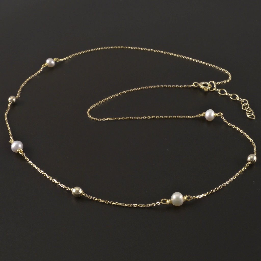 Tento zlatý náhrdelník s bílými perlami je šperkem, který spojuje jednoduchost a eleganci. Je vyroben ze žlutého zlata ryzosti 14kt. 585/1000 a zdoben střídajícími se kultivovanými perlami a zlatými kuličkami. Každý detail byl precizně zpracován, aby náhrdelník působil jemně a zároveň luxusně. Díky své lehkosti se příjemně nosí a skvěle doplňuje jak klasický, tak moderní styl. Nastavitelná délka umožňuje přizpůsobení dle potřeby. Ideální volba pro ženy, které hledají elegantní, ale nenápadný šperk pro každodenní nošení.