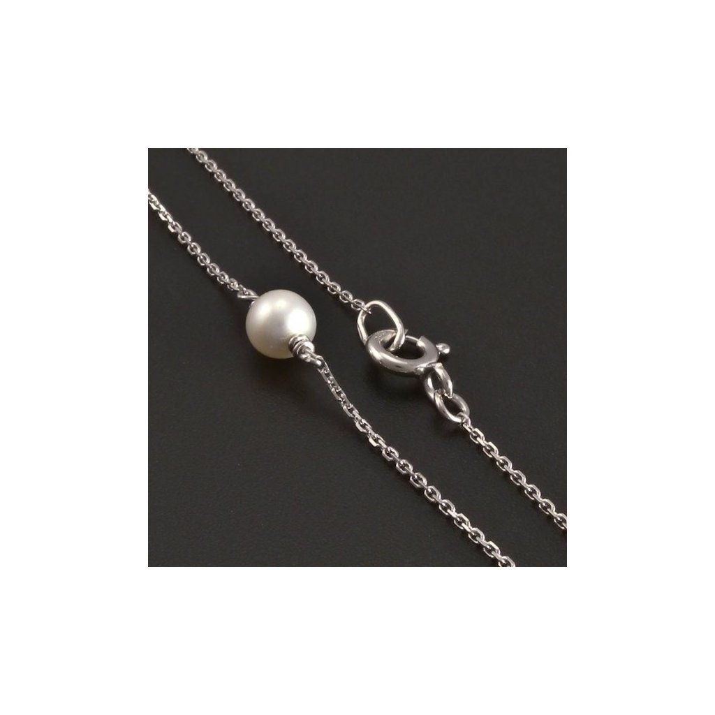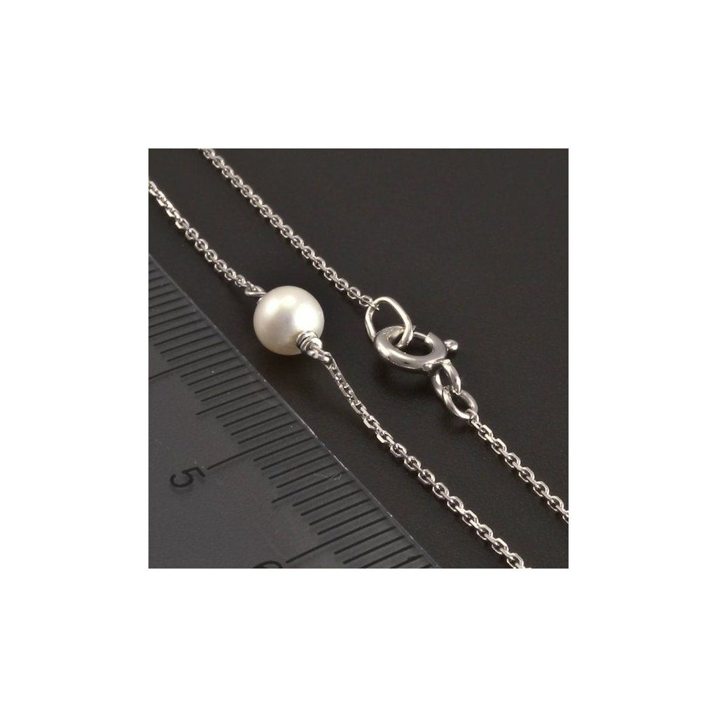 Náhrdelník je vyroben z bílého zlata ryzosti 585/1000. Jemný řetízek typu anker je široký 1 mm. Řetízek je zdoben bílými kultivovanými perlami o průměru 5 mm. Náhrdelník z bílého zlata má uzávěr pérový kroužek. Náhrdelník je vhodný na každodenní nošení.