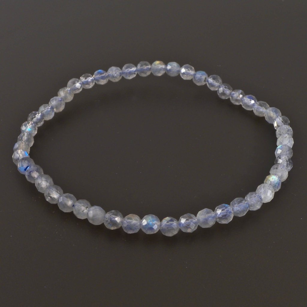 Tento korálkový náramek je vyroben z přírodních broušených korálků labradoritu, který je ceněn pro svůj unikátní optický efekt barvy a lesku. Jemné šedé odstíny v kombinaci s duhovými odlesky činí z tohoto šperku univerzální doplněk pro každodenní i slavnostní nošení. Díky elastickému nylonovému lanku se snadno navléká a pohodlně nosí.