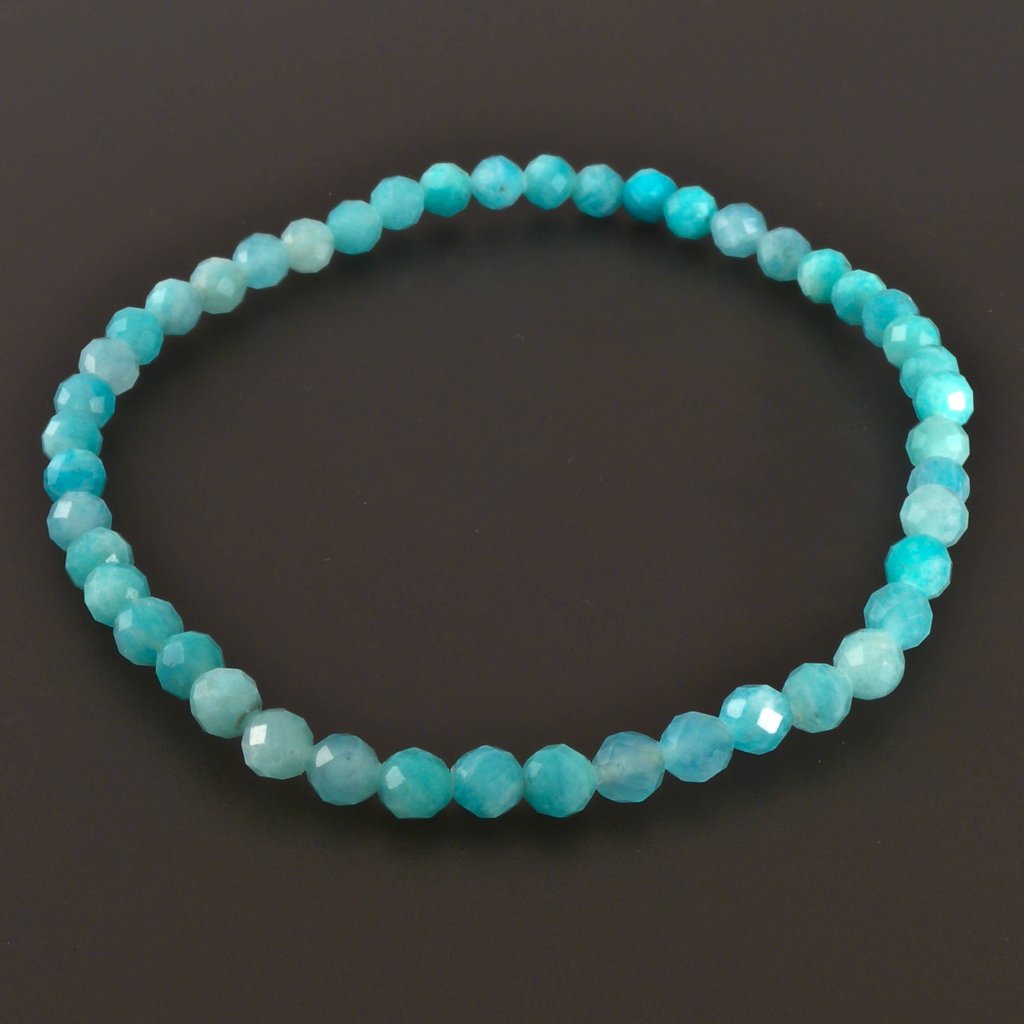 Moderní korálkový náramek z drobných broušených korálků přírodního amazonitu okouzlí svou výraznou tyrkysově modrou barvou. Díky elastickému provedení na nylonovém lanku sedí pohodlně na zápěstí a snadno se navléká. Minimalistický styl umožňuje kombinovat s jinými šperky, hodinkami nebo dalšími náramky.