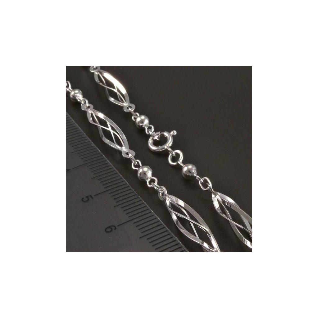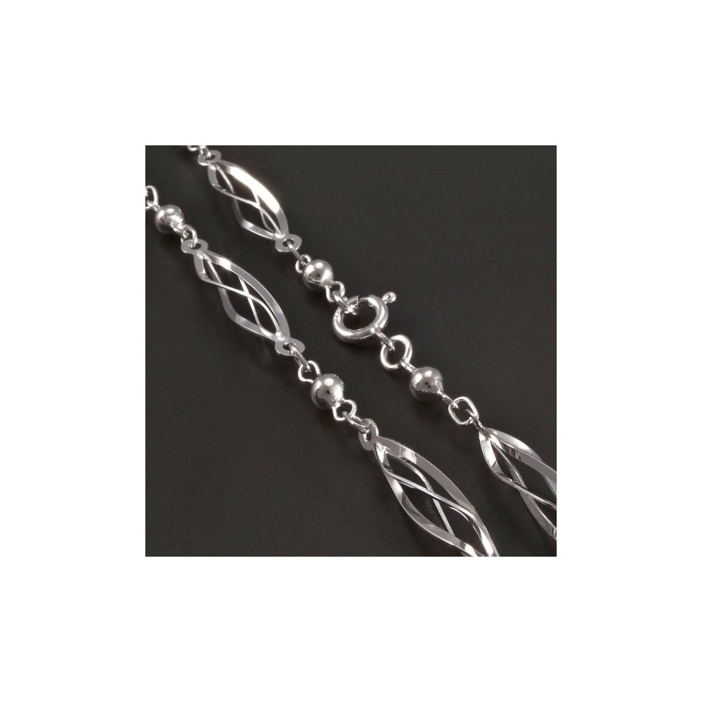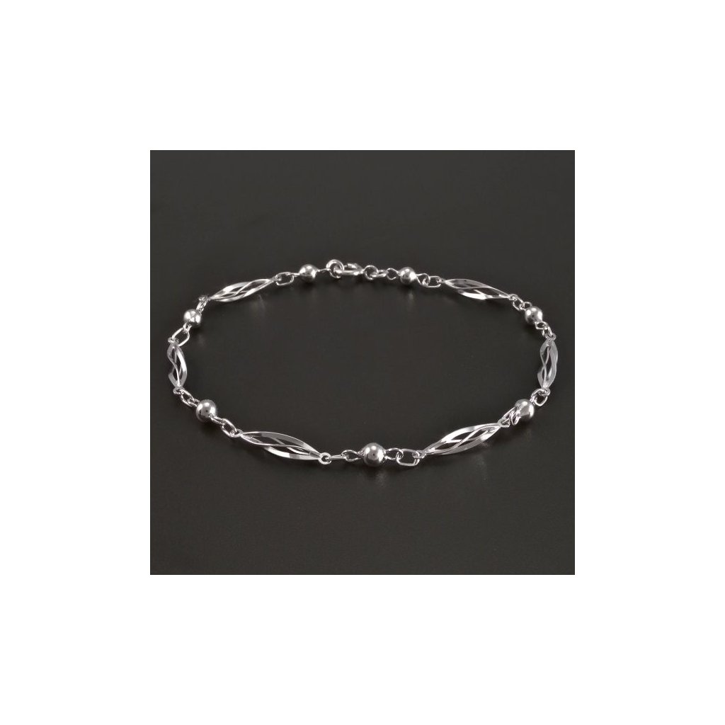 Zlatý náramek je vyroben z bílého zlata ryzosti 14kt. 585/1000. Zlatý hladký lesklý náramek je tvořen ozdobami typu ovísky a drobnými kuličkami. Náramek má uzávěr na pérový kroužek. Šířka náramku z bílého zlata je 3,50 mm. Krásný náramek vhodný pro každodenní nošení.