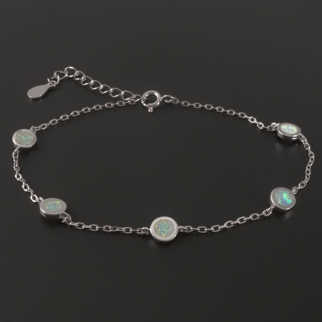 Řetízkový stříbrný náramek s bílým opálem