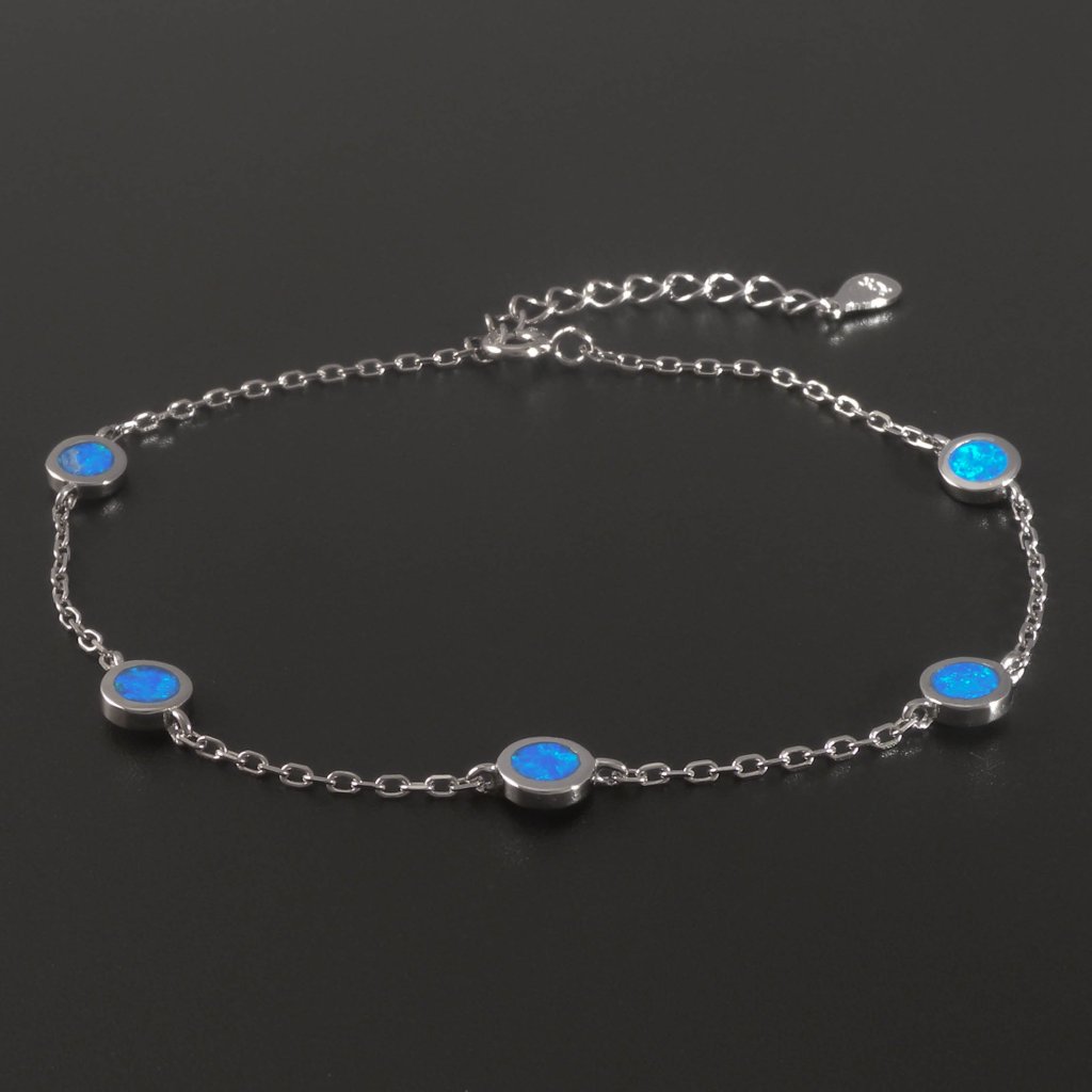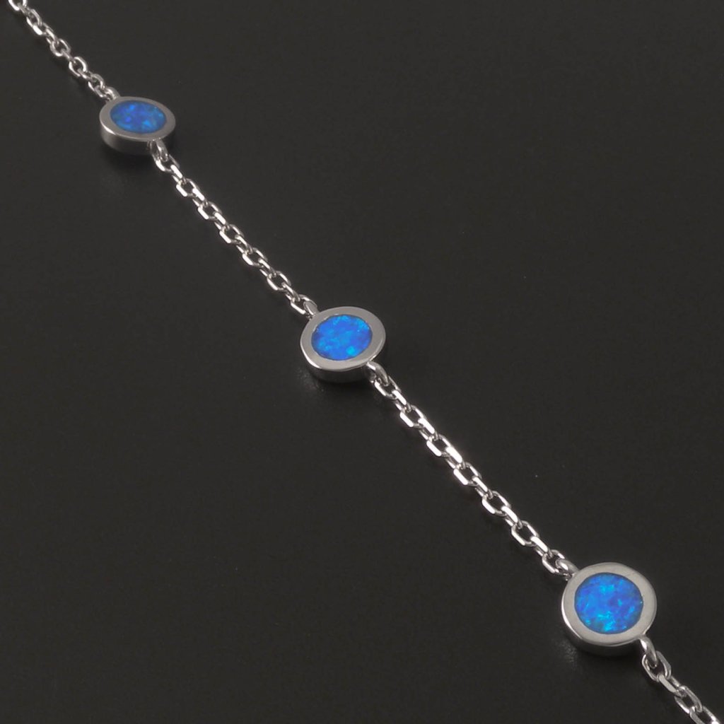 Řetízkový stříbrný náramek s modrým opálem
