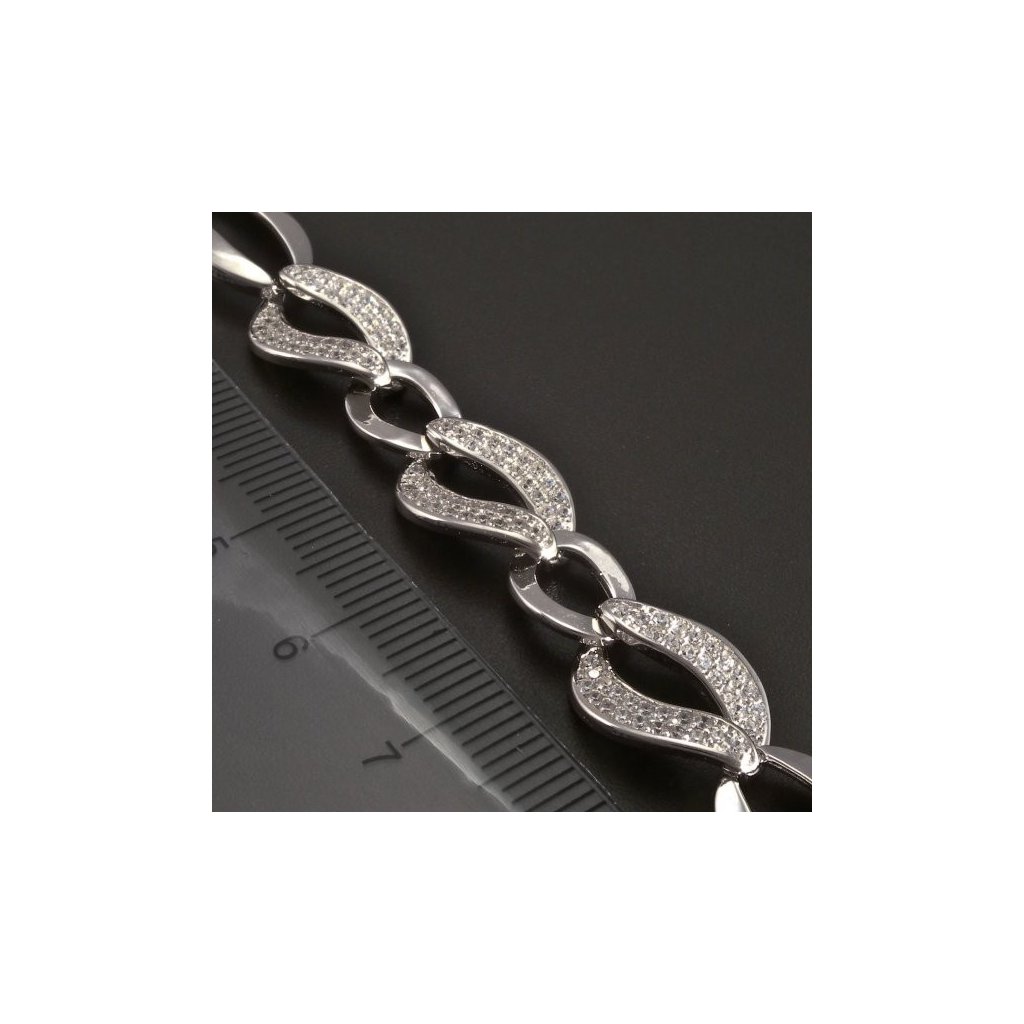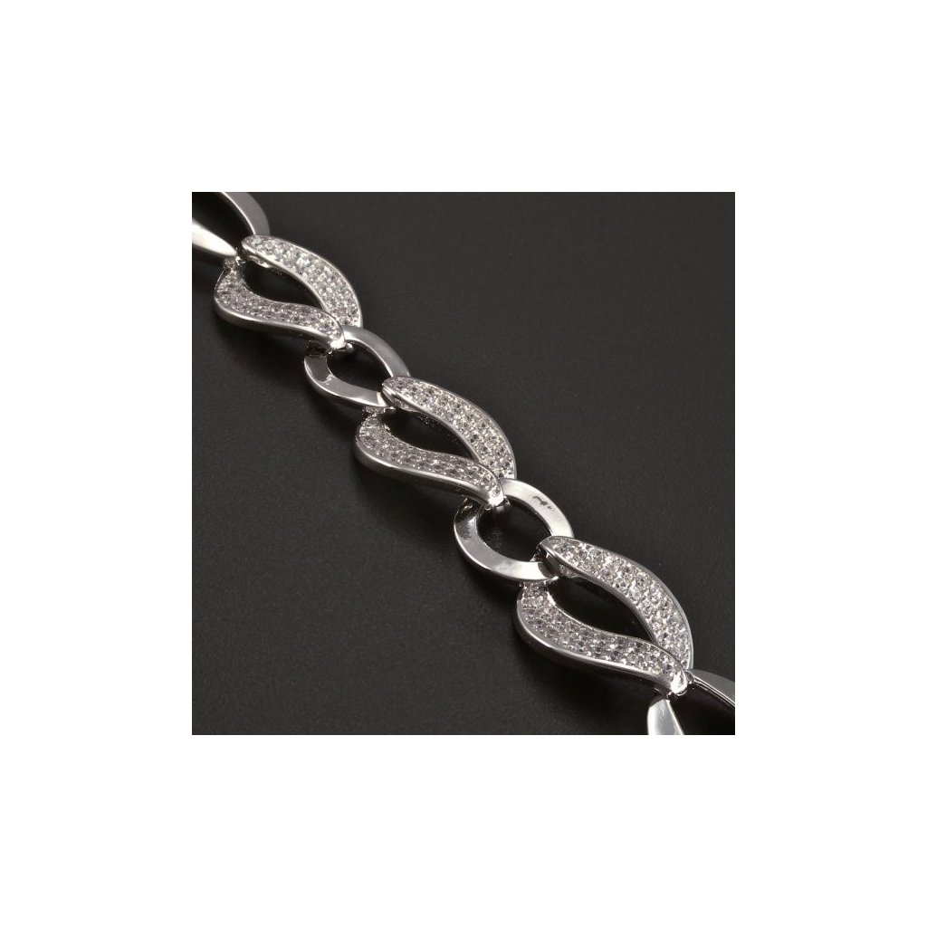 Stříbrný článkový náramek se zirkony
