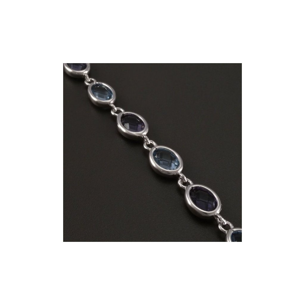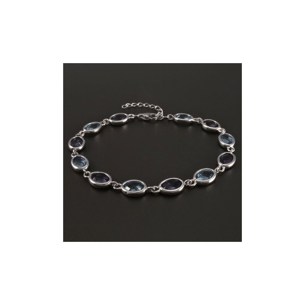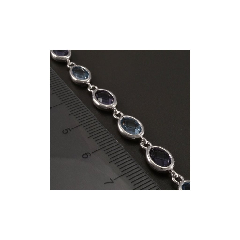 Náramek je vyroben ze stříbra ryzosti 925/1000. Stříbrný článkový náramek je osazen světle modrými a fialovými oválnými zirkony s krásným brusem. Velikost kamenů je 7x5 mm. Náramek je opatřen prodlužovacím řetízkem s variabilní délkou a má zapínání na karabinu. Tento stříbrný šperk je povrchově upraven rhodiem. Krásný stříbrný náramek vhodný pro každý den.