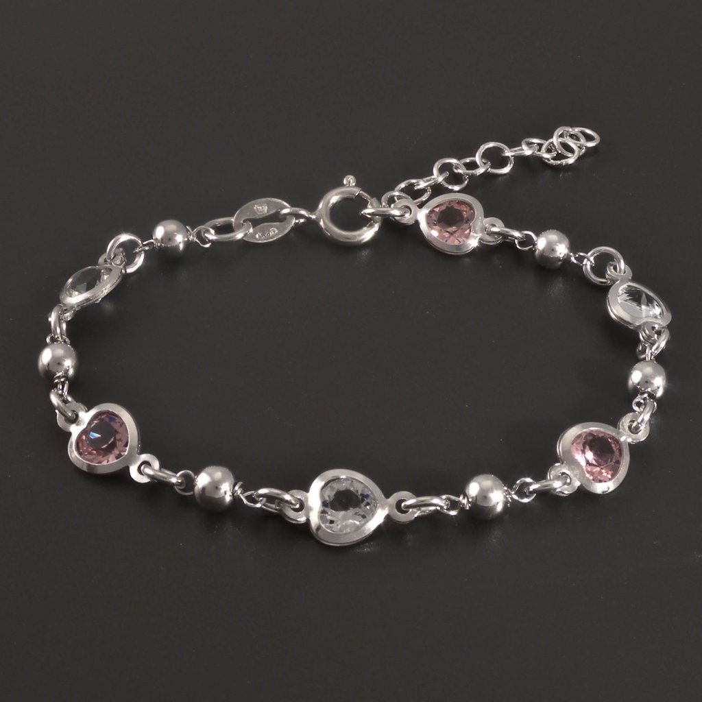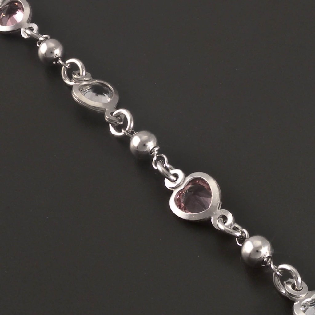 Elegantní stříbrný náramek s barevnými zirkony ve tvaru srdíček okouzlí svým detailním zpracováním a ženským půvabem. Kombinace čirých a růžových kamenů vytváří harmonický kontrast, který působí svěže a mladistvě. Stříbro má povrch ošetřený rhodiem pro větší odolnost a trvalý lesk. Díky nastavitelné délce náramek perfektně padne a je vhodný ke každodennímu nošení i jako doplněk pro slavnostní příležitosti.