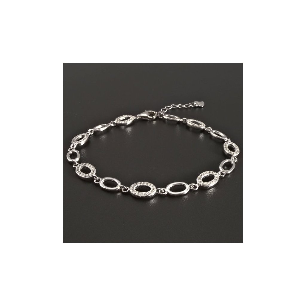 Stříbrný náramek je vyroben ze stříbra ryzosti 925/1000. Stříbrný náramek má každé druhé očko pokryté zirkonem, ostatní očka jsou upravena v hladkém lesklém provedení. Stříbrný náramek má karabinový uzávěr a prodlužovací řetízek. Šířka očka se zirkonem je 6 mm a šířka očka bez zirkonu je 5,2 mm. Stříbrný náramek je povrchově upraven rhodiem. Libivý stříbrný náramek na ruku je kvalitně zpracovaný a vhodný pro každou příležitost.