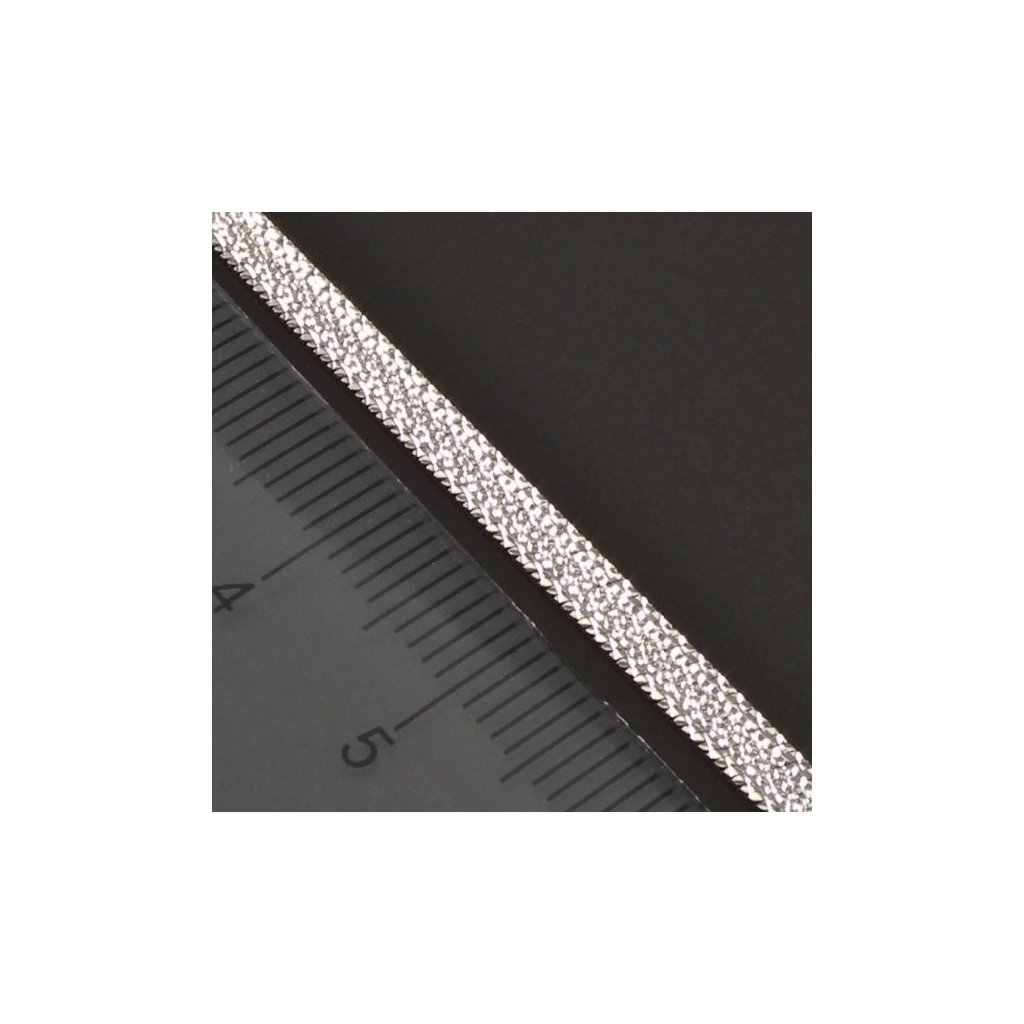 Náramek je vyroben ze střibra ryzosti 925/1000. Stříbrný náramek je z přední strany ozdoben jemným vybrušovaním a zadní strana je v lesklém provedení. Celý plochý náramek zdobí jemný třpytivý lesk. Stříbrný náramek je široký 3,30 mm. Stříbrný šperk je povrchově upraven rhodiem. Jednoduchý nadčasový šperk vhodný pro každou příležitost.