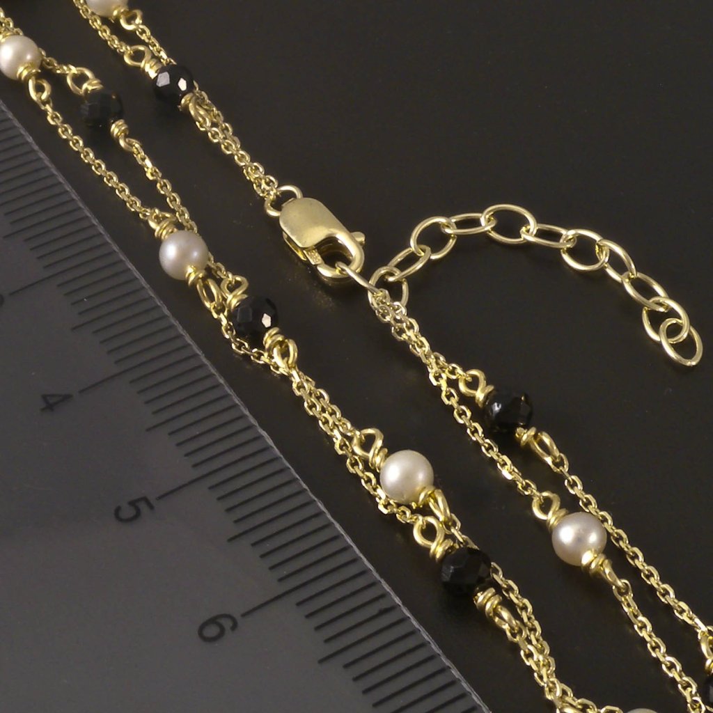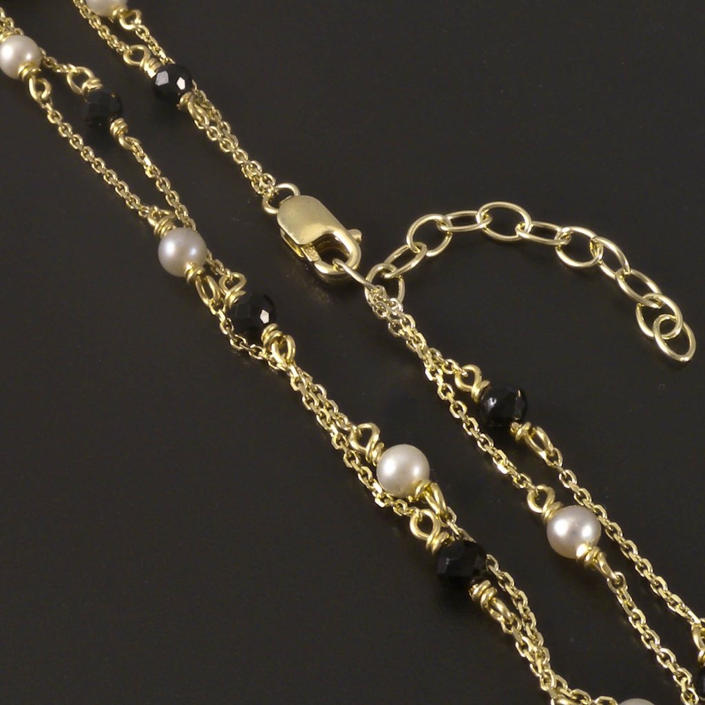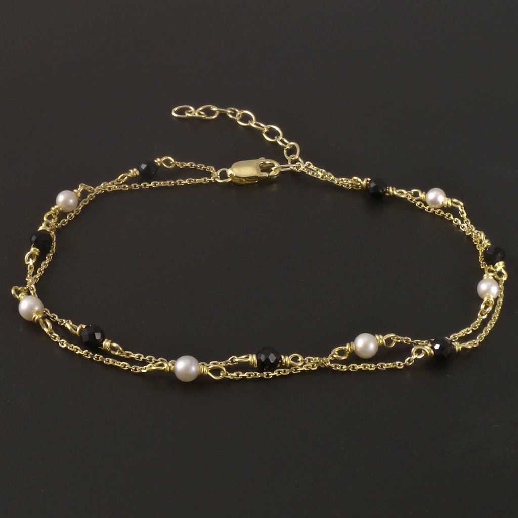 Zlatý náramek černý spinel a perly