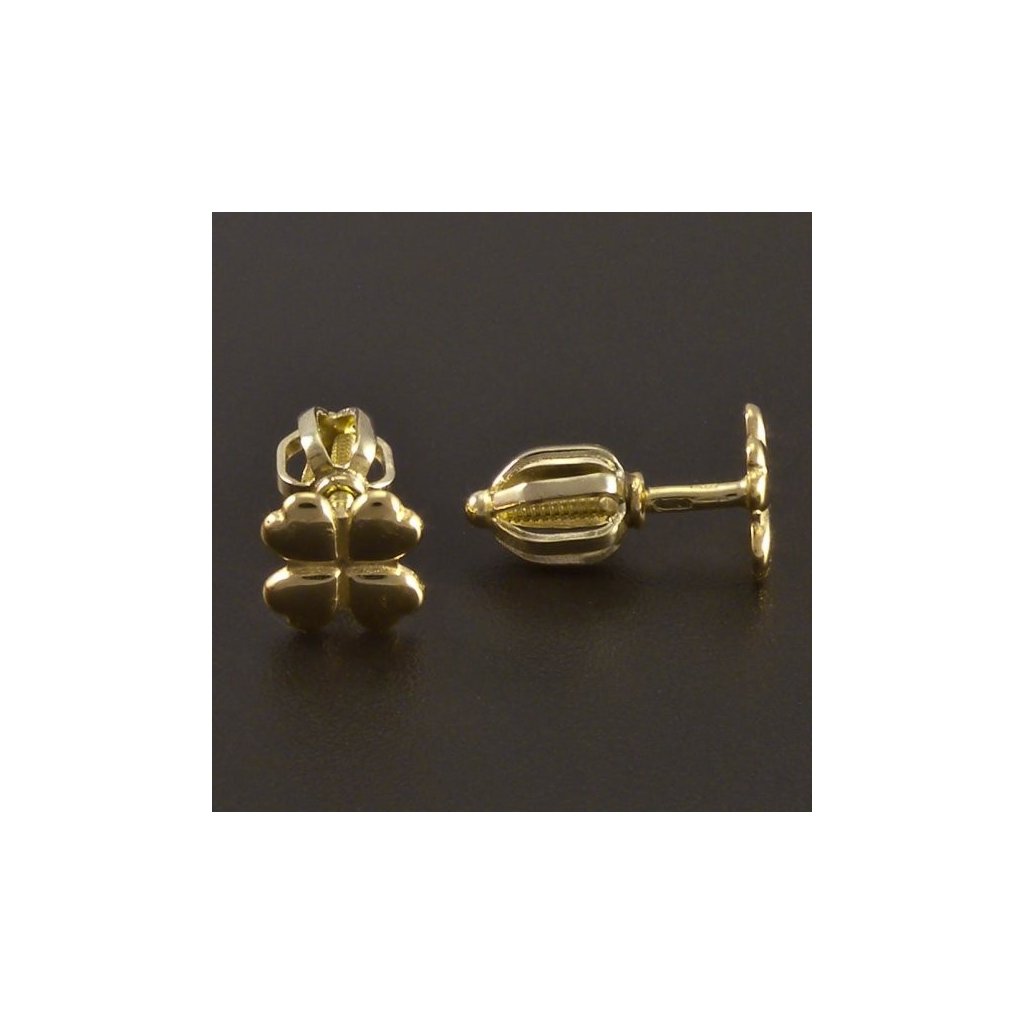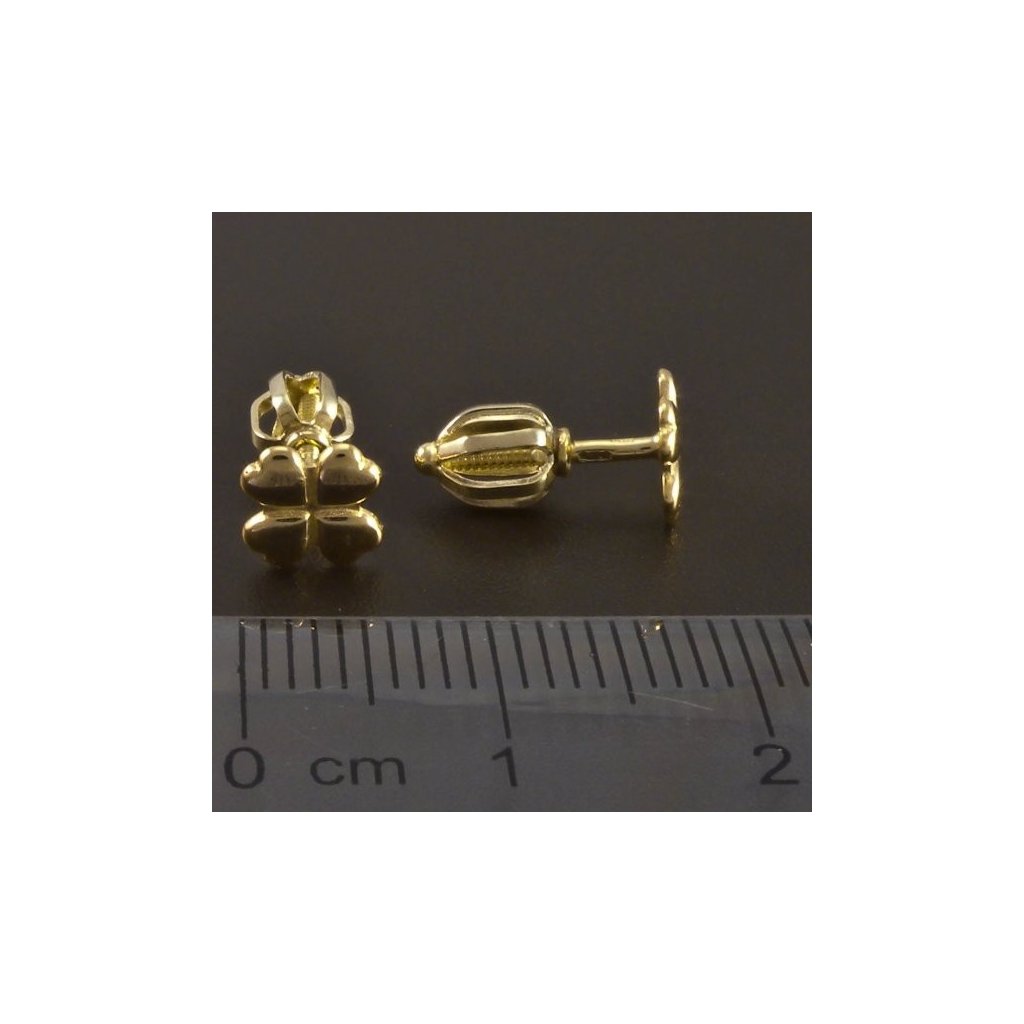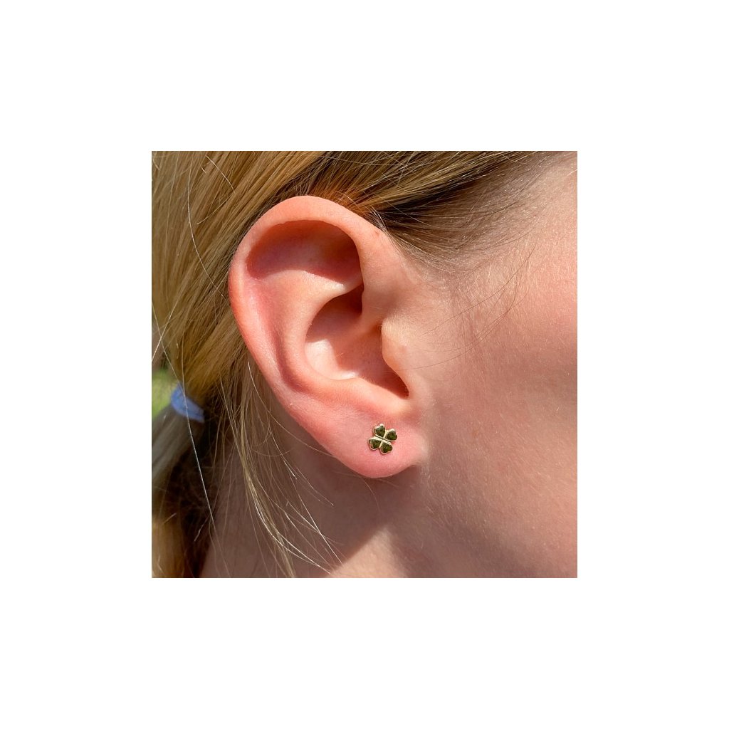 Tyto drobné náušnice pecky zaujmou svým jednoduchým, ale výrazným designem čtyřlístku. Vyrobené z kvalitního žlutého zlata, jsou ideální volbou pro každodenní nošení i jako milý dárek pro štěstí. Lesklý povrch dodává náušnicím elegantní vzhled, zatímco šroubovací zapínání zajišťuje maximální jistotu při nošení. Náušnice čtyřlístky krásně doplní jakýkoli outfit a stanou se symbolem štěstí, který budete mít stále u sebe.