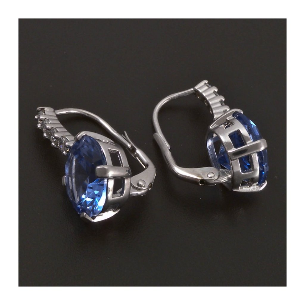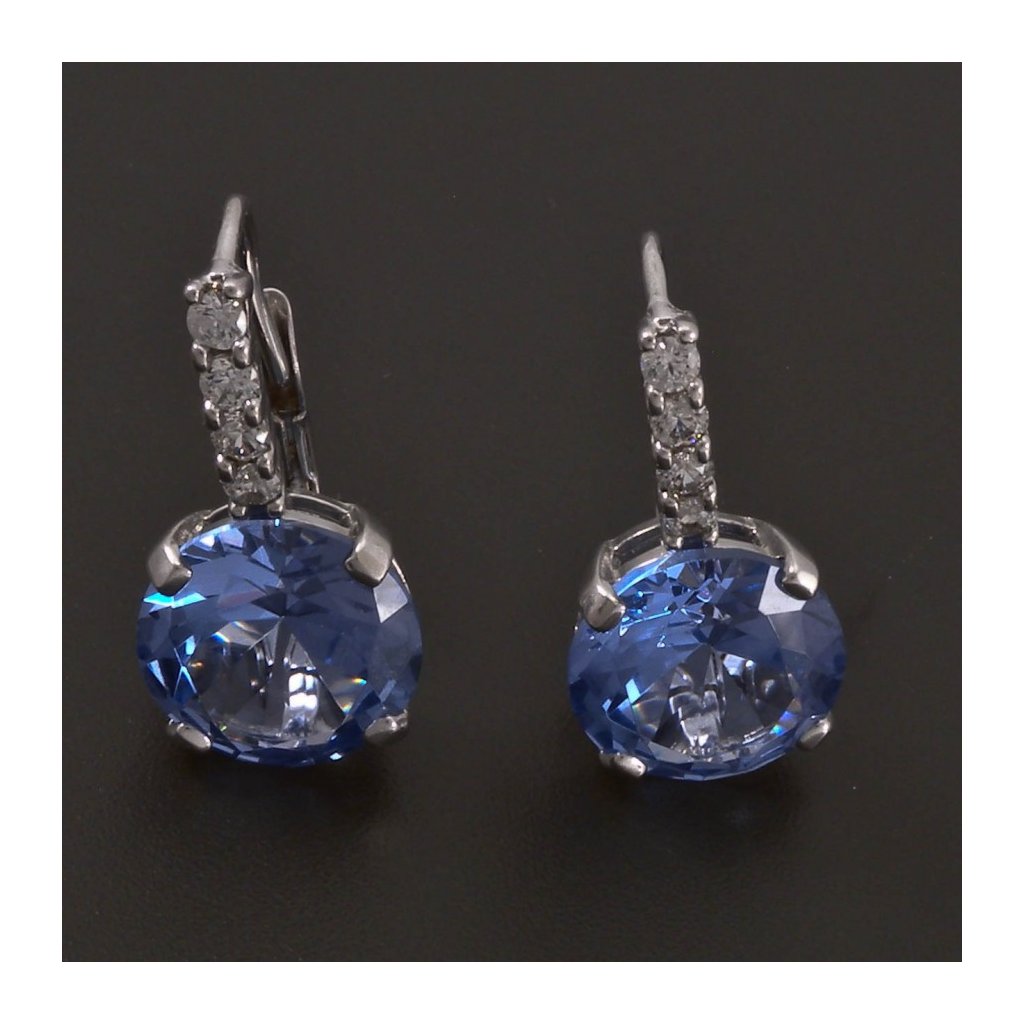 Tyto náušnice z bílého zlata s akvamarínem a čirými zirkony jsou symbolem elegance a precizního zlatnického zpracování. Centrální kámen v nebesky modrém odstínu vytváří kontrast s jasem čirých zirkonů, které zdobí horní část šperku. Náušnice jsou vyrobeny z bílého zlata ryzosti 14kt. 585/1000 a mají lesklou povrchovou úpravu, díky které dokonale vynikne jejich moderní tvar. Patentové zapínání zaručuje bezpečné nošení. Rozměr 17 × 8 mm dělá z těchto náušnic univerzální doplněk, vhodný pro každodenní nošení i slavnostní příležitosti.