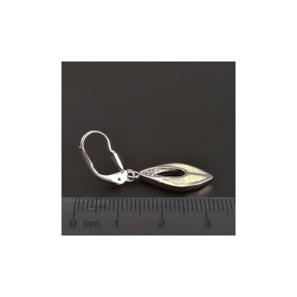 Náušnice jsou vyrobeny ze stříbra ryzosti 925/1000. Náušnice jsou zdobeny bílým opálitem a drobnými bílými zirkony. Stříbrné náušnice mají klasické dámské zapínání. Velikost celé náušnice je 35x10 mm. Stříbrné náušnice jsou povrchově upraveny rhodiem. Náušnice je možno doplnit přívěskem viz. zboží související.