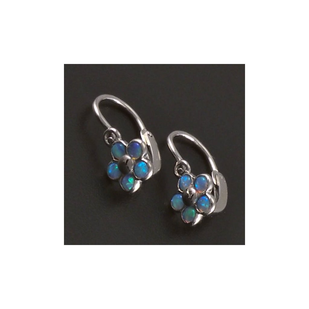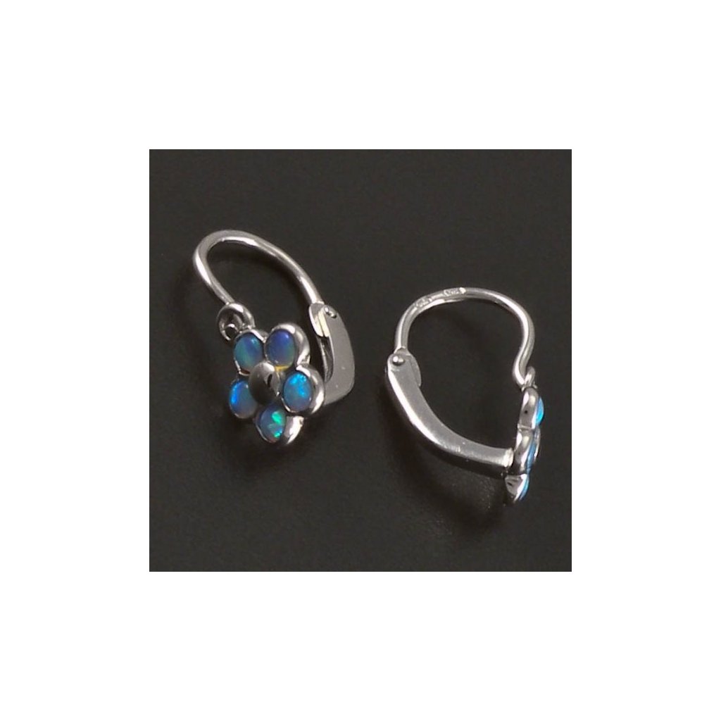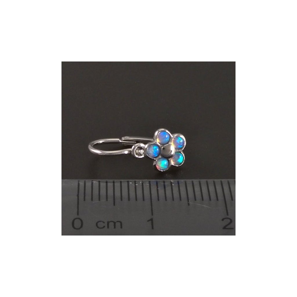 Dětské náušnice jsou vyrobeny z bílého zlata ryzosti 14kt 585/1000. Zlaté náušnice mají klasický dětský uzávěr vpředu. Náušničky ve tvaru pomněnky jsou zdobeny pěti modrými synt. opály o průměru 1,8 mm. Velikost celé náušnice je 13x6 mm. Zlatý šperk pro ty nejmenší slečny. Tyto dětské zlaté náušnice jsou kvalitně vyrobeny v České republice.