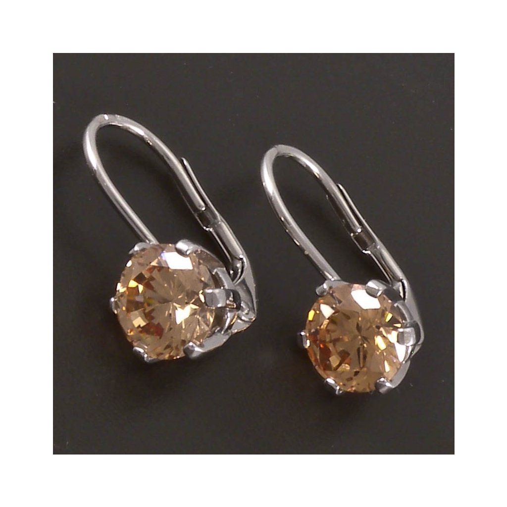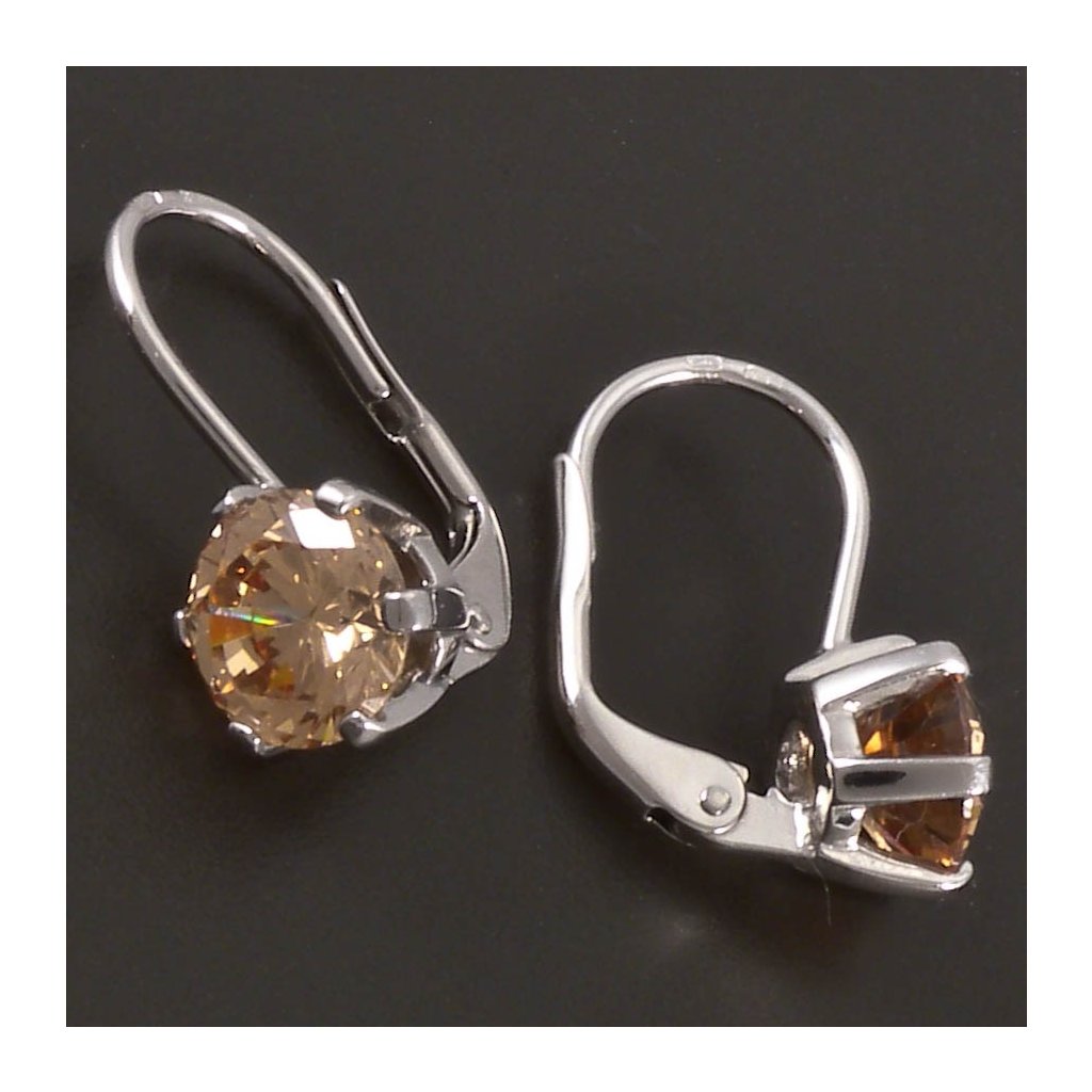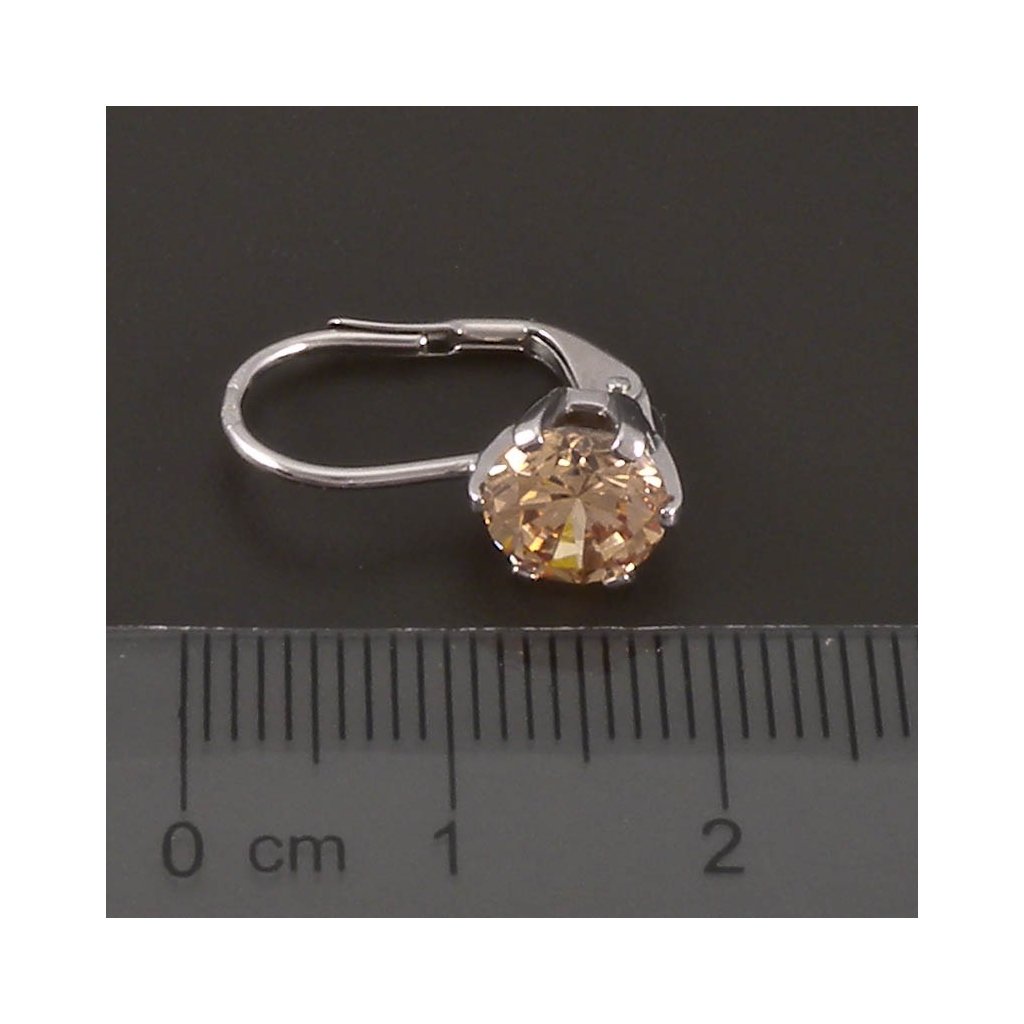 Tyto elegantní náušnice z bílého zlata jsou osazeny zirkony v barvě champagne o průměru 7 mm, které dodávají šperku sofistikovaný a jemně třpytivý vzhled. Klasické dámské zapínání zajišťuje pohodlné a bezpečné nošení, což dělá z těchto náušnic perfektní volbu jak pro každodenní příležitosti, tak pro speciální události.