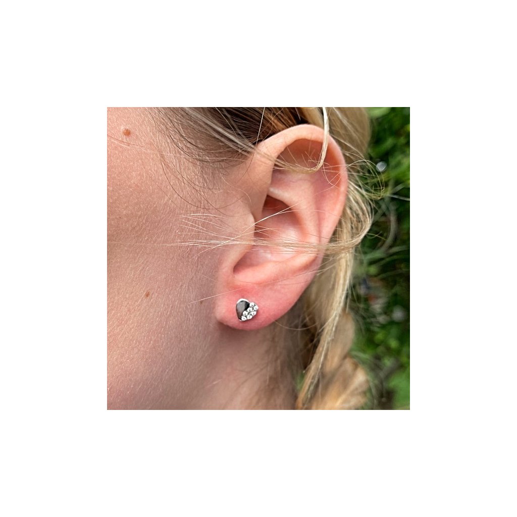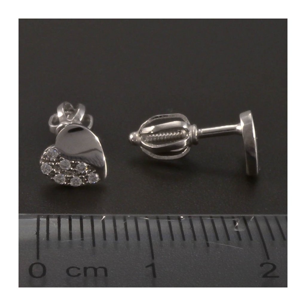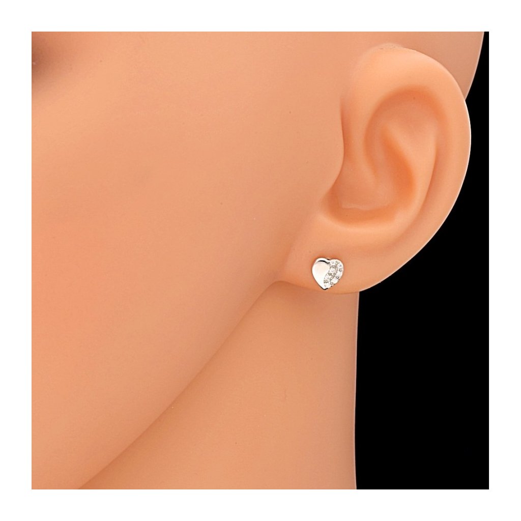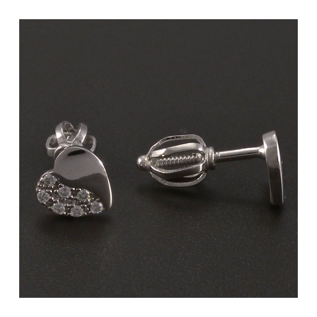 Zlaté náušnice jsou vyrobeny z bílého zlata o ryzosti 14 kt. 585/1000. Tyto jemné náušnice mají tvar srdce o rozměru 6x6 mm. Srdíčko je z poloviny v hlakém lesklém provedení a z druhé poloviny je osazeno drobnými bílými zirkony. Náušnice z bílého zlata mají uzávěr na šroubek. Jemné pecky ve tvaru srdce jsou vhodné jak pro ženy, tak i pro dívky a děti. Doporučujeme.