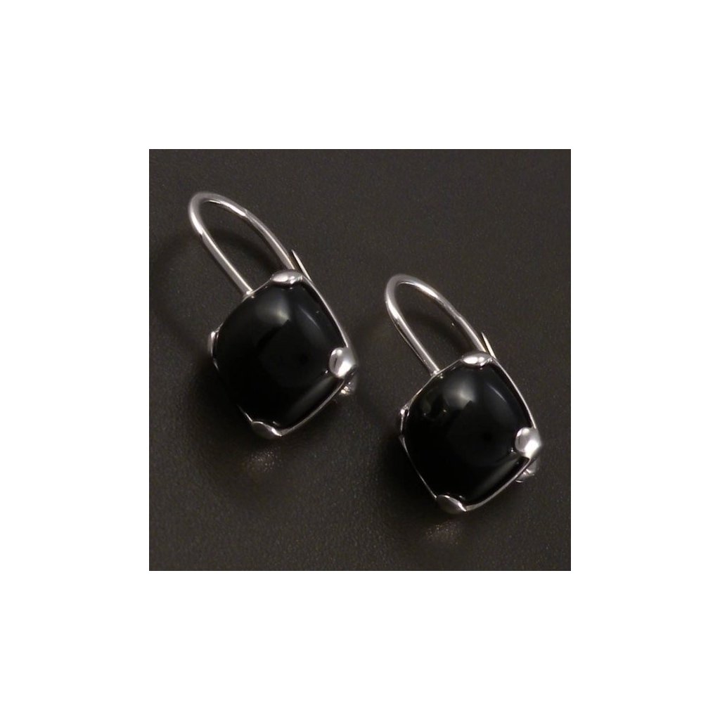 Stylové náušnice z bílého zlata v sobě spojují jednoduchost a výrazný vzhled díky černému onyxu ve tvaru polštářku. Kámen má hladký povrch a je uchycen ve čtyřech pevných krapnách, které zajišťují jeho stabilitu. Díky tmavému tónu onyxu se náušnice skvěle kombinují s jakýmkoliv outfitem, a to jak pro denní nošení, tak i slavnostní příležitosti. Pohodlné zapínání na klasický patent zajišťuje snadné a bezpečné nasazování.