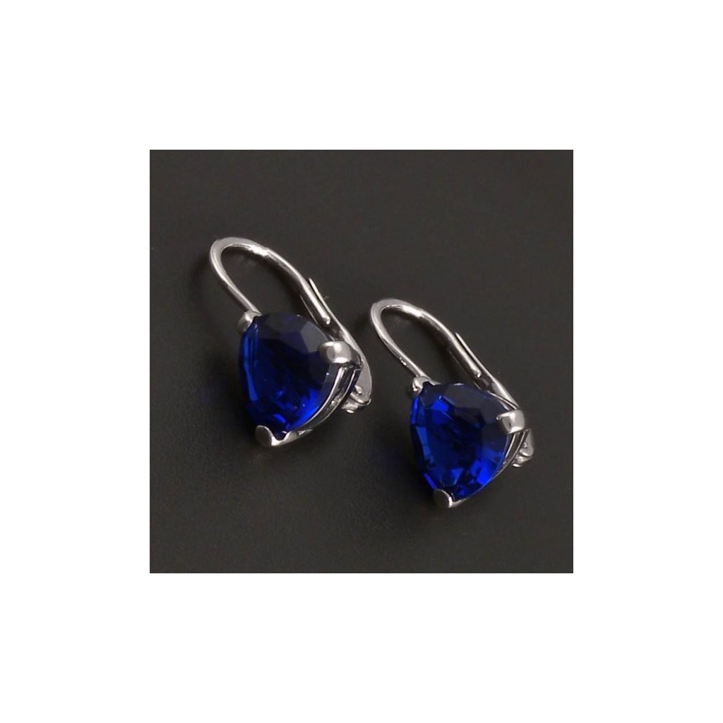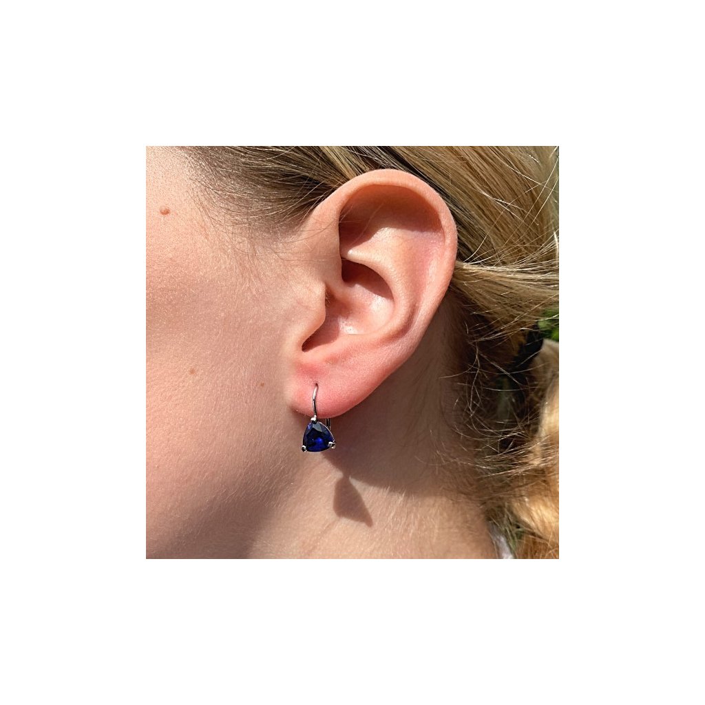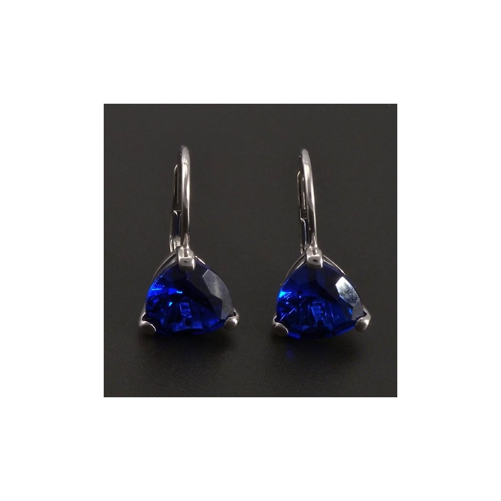 Moderní náušnice z bílého zlata upoutají výrazným trojúhelníkovým synt. safírem, jehož sytá modř krásně vyniká v hladké zlaté obrubě. Kvalitní zlatnické zpracování a bezpečné zapínání na patent zajišťují nejen komfort při nošení, ale i dlouhou životnost šperku. Náušnice se hodí jak na slavnostní události, tak i jako luxusní doplněk běžného outfitu. Výborně ladí s dalšími šperky v modrých tónech.