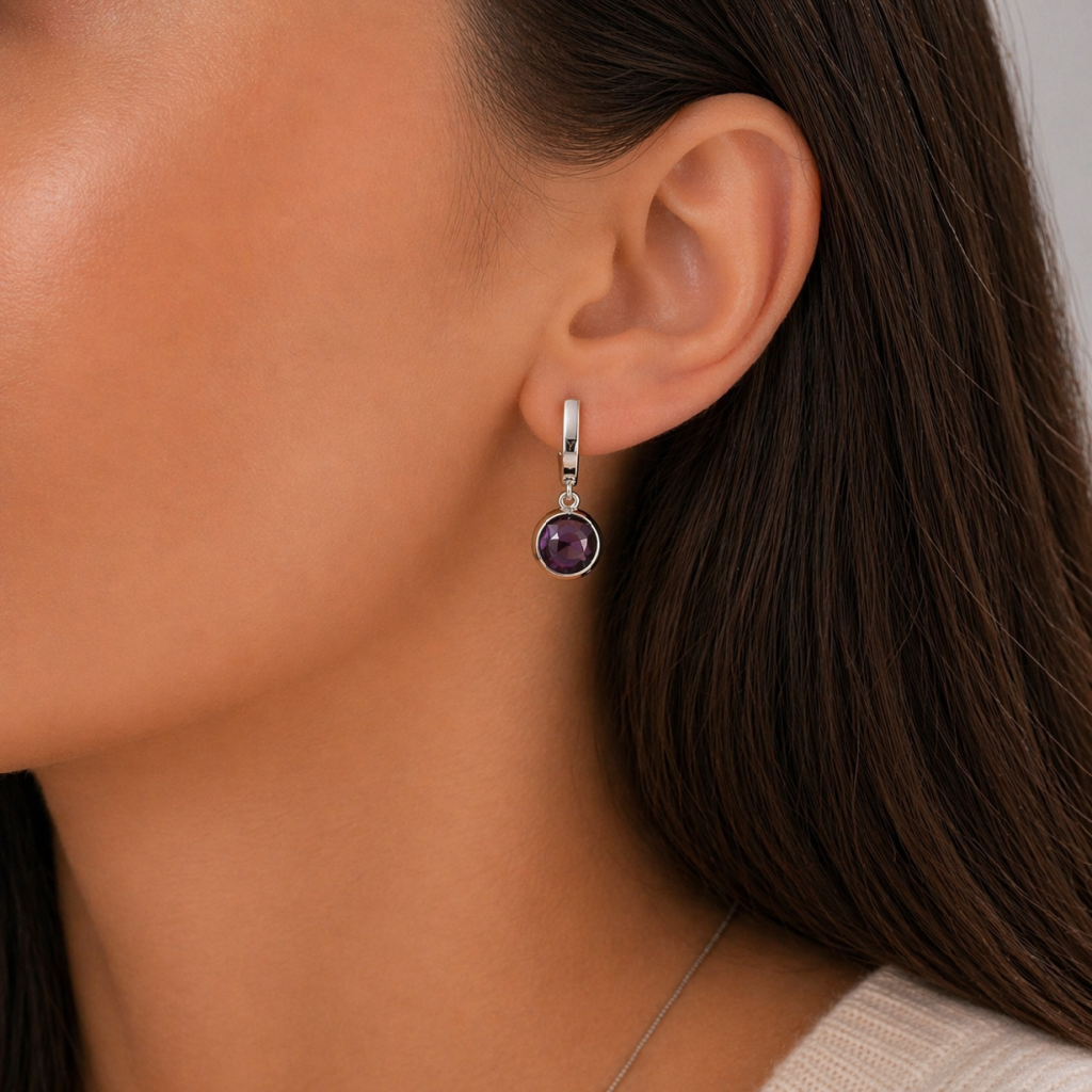 Dámské náušnice z bílého zlata zdobí hladce broušené kulaté ametysty v sytě fialové barvě. Elegantní design s jemným pohybem při nošení podtrhuje ženskost a vytváří velmi decentní dojem. Pojistkové zacvakávací zapínání zaručuje bezpečné a pohodlné uchycení. Ametysty jsou zasazeny v hladké obrubě a díky svému zrcadlovému lesku vyniknou při jakékoliv příležitosti.