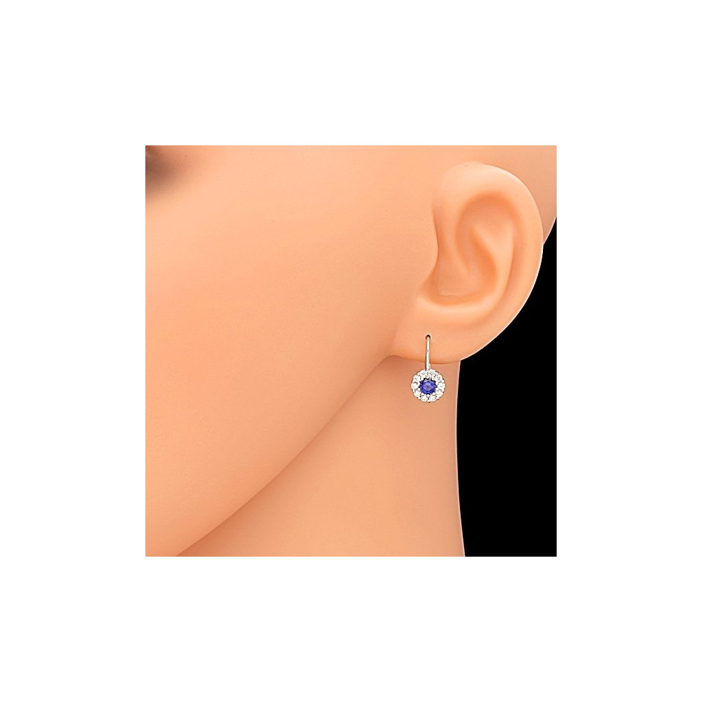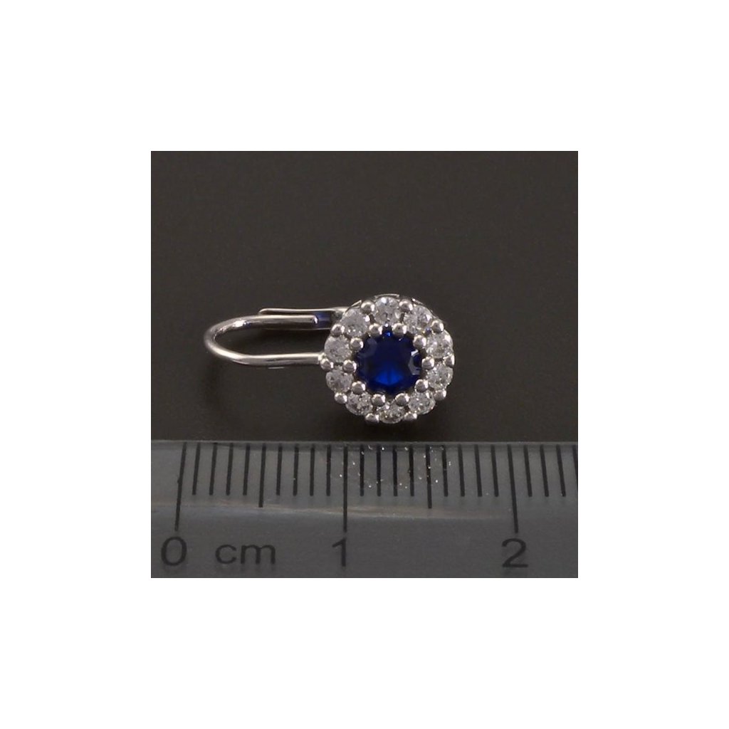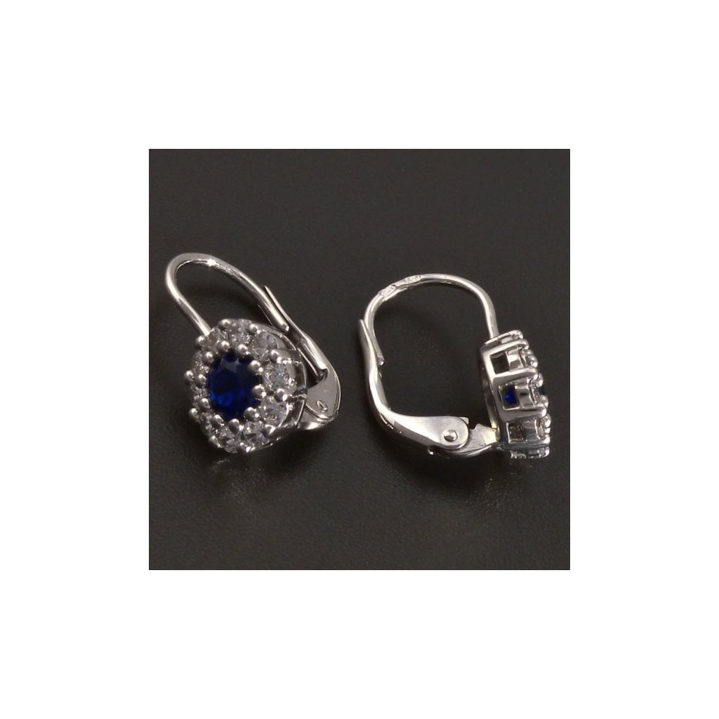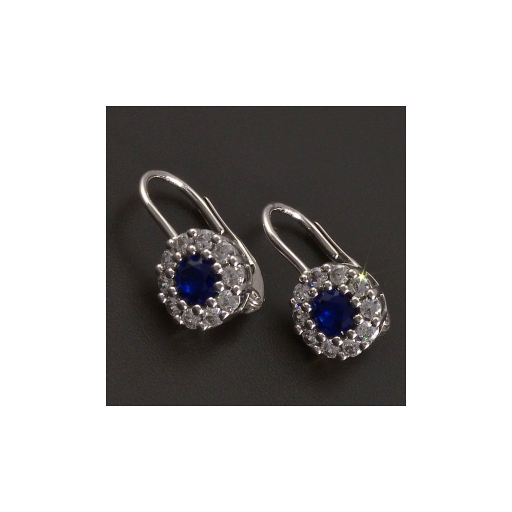 Stříbrné kulaté náušnice safír a zirkony