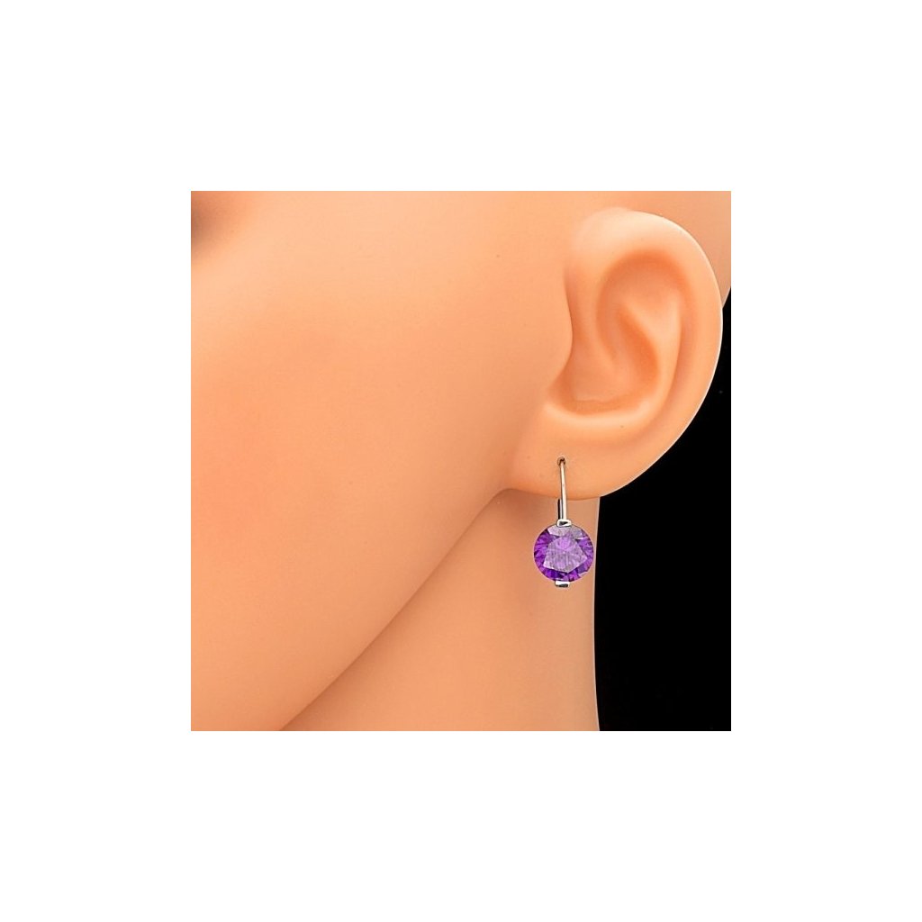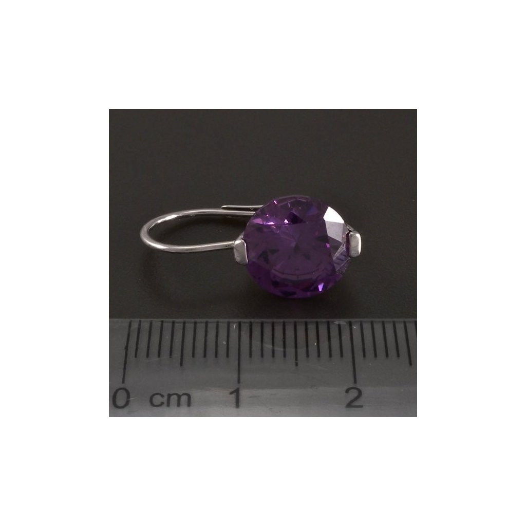 Stříbrné náušnice jsou vyrobeny ze stříbra ryzosti 925/1000. Krásné stříbrné náušnice zdobí velký synt. ametyst fialové barvy. Průměr kamene je 10 mm. Prořezávaná obruba ve které je kámen zasazen, dává prostor světlu, který zvýrazní třpyt kamene. Náušnice májí klasický dámský uzávěr. Moderní stříbrné náušnice pro každý den.