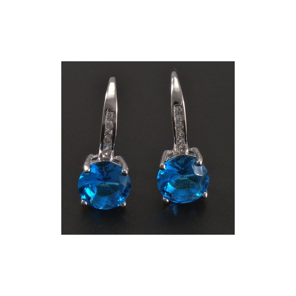 Náušnice jsou vyrobeny ze stříbra ryzosti 925/1000. Náušnice jsou osazeny větším modrým zirkonem o průměru 8 mm a jsou dozdobeny několika menšími bílými zirkony. Velikost celé náušnice je 18x8 mm. Náušnice mají klasický dámský uzávěr a jsou povrchově upraveny rhodiem. Sytě modré (tyrkysové) náušnice vhodné na denní nošení i na společenské události. Doporučujeme.