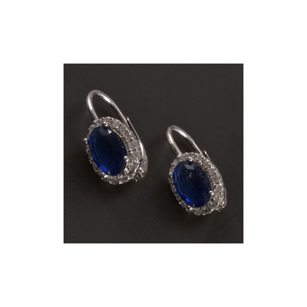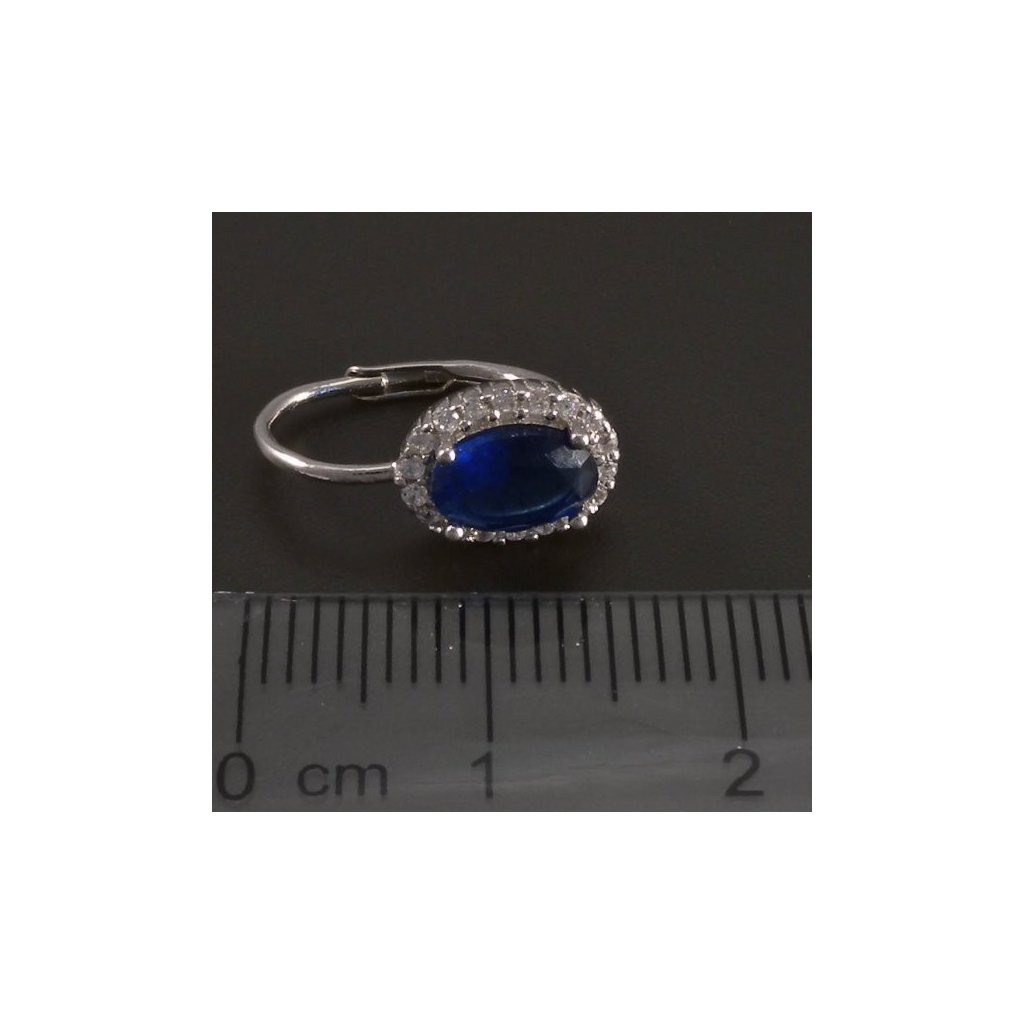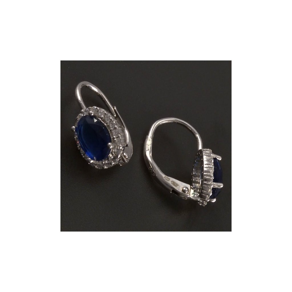 Náušnice jsou vyrobeny ze stříbra ryzosti 925/1000. Oválné stříbrné náušnice jsou osazeny synt. modrým safírem a jsou dozdobeny jemnými bílými zirkony. Rozměr safíru je 7x5 mm, velikost náušnice je 15x7 mm. Safírové náušnice mají klasický dámský uzávěr. Náušnice jsou povrchově ošetřeny rhodiem. Krásné safírové náušnice vhodné pro mnoho příležitostí.