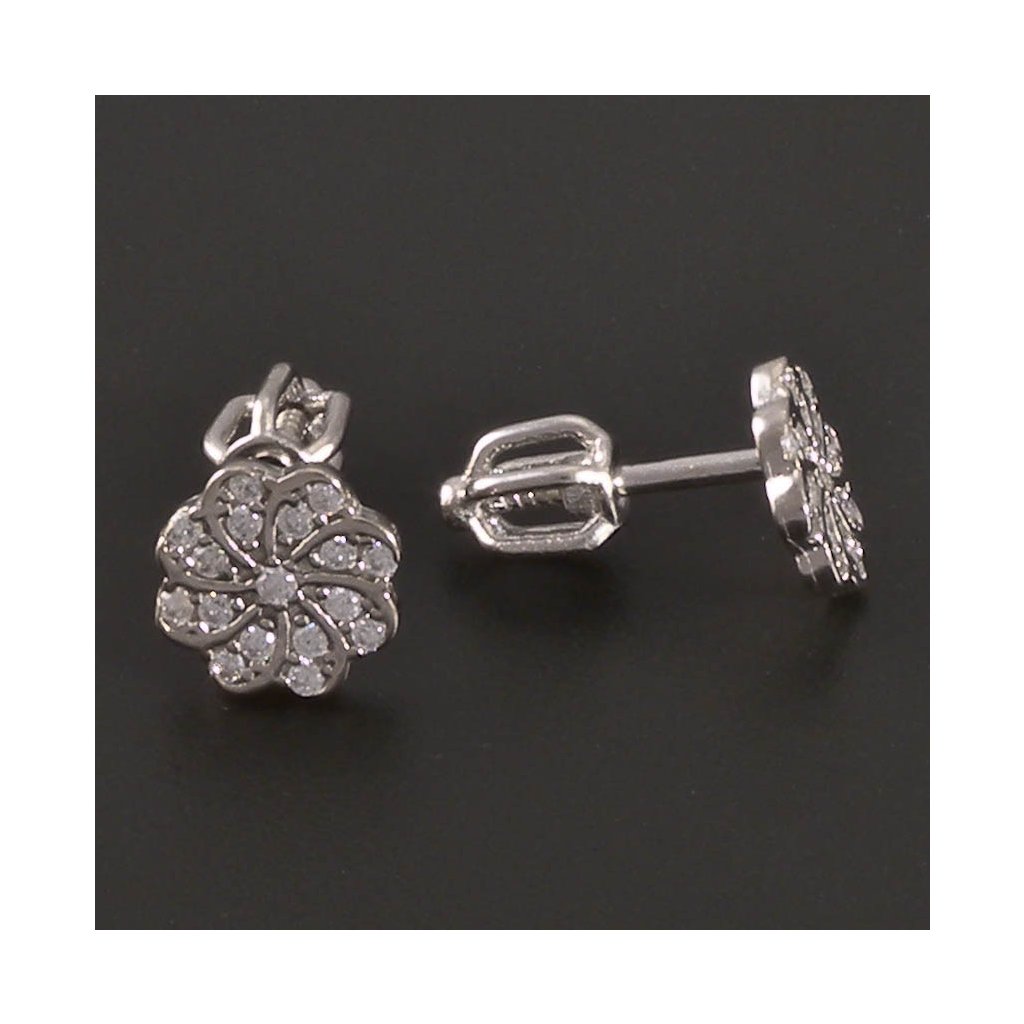 Tyto nádherné stříbrné náušnice pecky ve tvaru květu okouzlí detailním zpracováním a zářivým třpytem drobných čirých zirkonů. Povrchová úprava rhodiem dodává šperku stálý lesk a chrání ho před oxidací. Díky šroubovacímu zapínání jsou náušnice bezpečné a pohodlné i při celodenním nošení. Jejich univerzální design z nich dělá ideální doplněk pro běžné dny i slavnostní události. Květ jako symbol života a krásy dodává náušnicím jemný a ženský výraz, který nikdy nevyjde z módy.