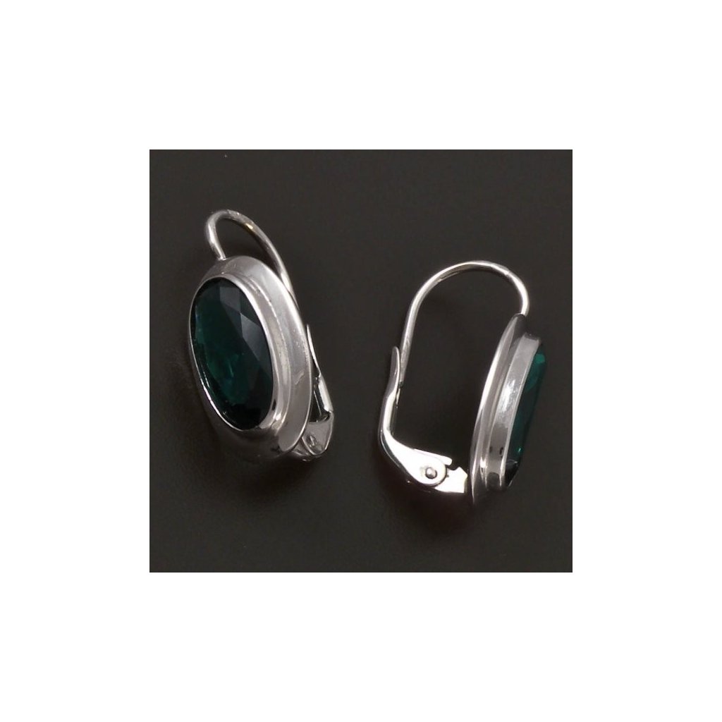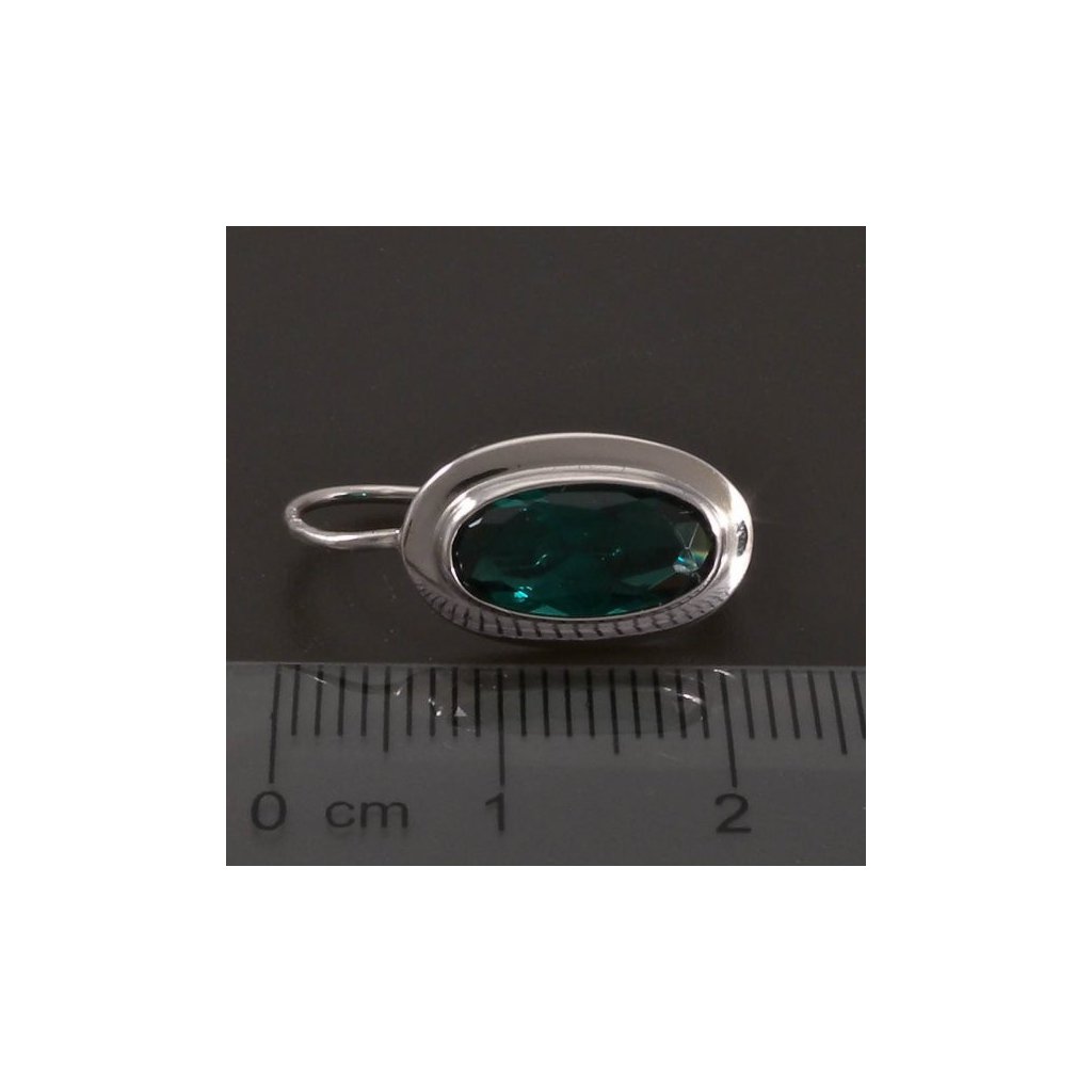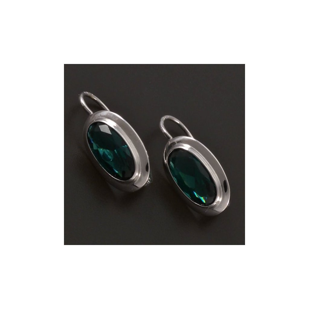 Oválné náušnice jsou vyrobeny ze stříbra ryzosti 925/1000. Stříbrné náušnice jsou osazeny krásně broušeným tmavě zeleným synt. smaragdem oválného tvaru. Velikost kamene je 12x6 mm. Náušnice mají klasický dámský patentový uzávěr. Elegantní stříbrný šperk pro každou příležitost pochází z naší zlatnické dílny. Náušnice jsou povrchově upraveny rhodiem, pro krásný lesk stříbra.