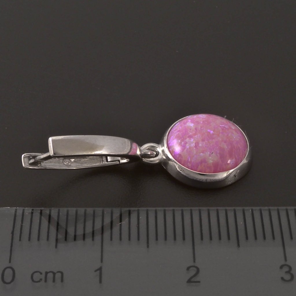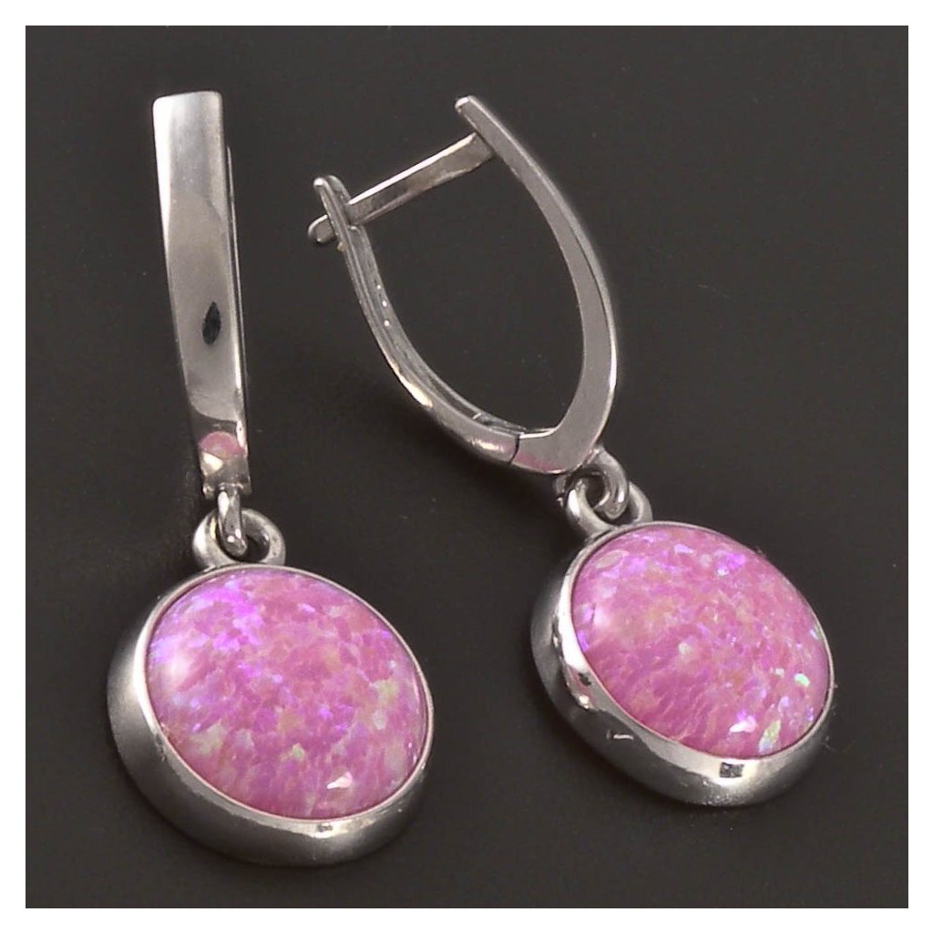 Visací náušnice z rhodiovaného stříbra jsou osazeny kulatým syntetickým růžovým opálem, který okouzlí svou barevnou hloubkou a jemnými odlesky. Hladké zasazení kamene zvyšuje odolnost proti poškození a umožňuje snadné kombinování s jinými šperky. Zacvakávací pojistkové zapínání poskytuje komfort a jistotu při každodenním nošení. Skvělý doplněk pro ženy, které hledají spojení moderní jednoduchosti a hravé barevnosti.