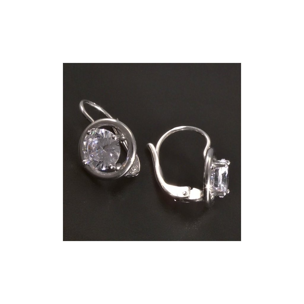 Náušnice jsou vyrobeny ze stříbra ryzosti 925/1000. Stříbrné náušnice jsou osazeny kulatými bílými zirkony o průměru 6 mm. Kulaté hladké lesklé náušnice jsou povrchově upraveny rhodiem. Rozměr celé náušnice je 15x9 mm. Stříbrné náušnice mají klasické patentové zapínání. Stříbrné náušnice vhodné pro každodenní nošení.