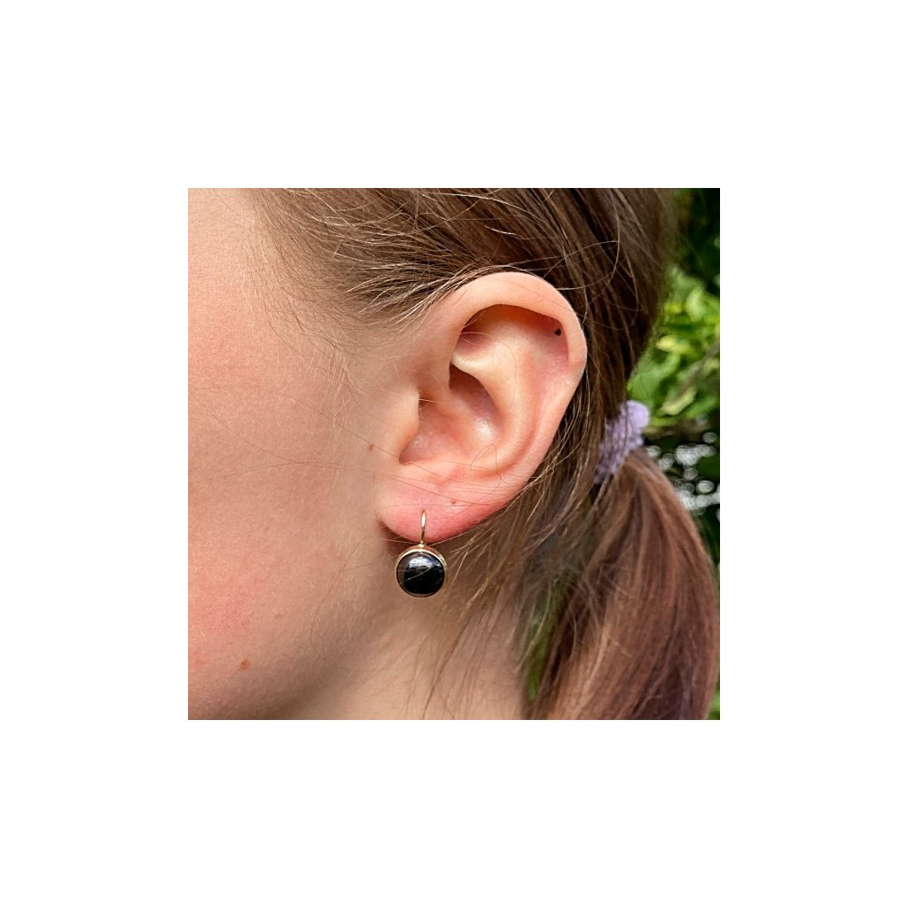 Tyto nádherné kulaté náušnice s onyxem jsou dokonalým spojením jednoduchosti a luxusu. Sytě černý onyx vyniká ve spojení se žlutým zlatem, které podtrhuje jeho tajemný lesk. Díky klasickému tvaru a praktickému zapínání jsou náušnice ideální pro ženy, které hledají elegantní a univerzální doplněk pro běžné i slavnostní příležitosti. Tento šperk dodá každému outfitu rafinovanost.