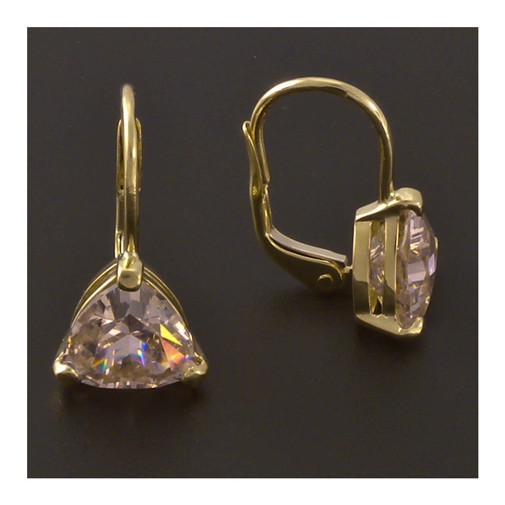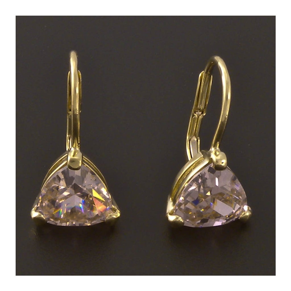 Tyto náušnice s kameny jsou vyrobeny ze žlutého zlata a zdobí je trojúhelníkově broušené růžové zirkony, které vynikají svou jemnou barvou a výrazným leskem. Originální tvar kamene dodává šperku moderní vzhled, zatímco klasické provedení ze zlata zachovává nadčasovou eleganci. Patentové zapínání zajišťuje pohodlné a bezpečné nošení po celý den. Díky svému designu jsou náušnice vhodné jak na každodenní nošení, tak i k slavnostním příležitostem. Růžové zirkony krásně vyniknou samostatně, ale dokonale doplní i jiné šperky s barevnými kameny.