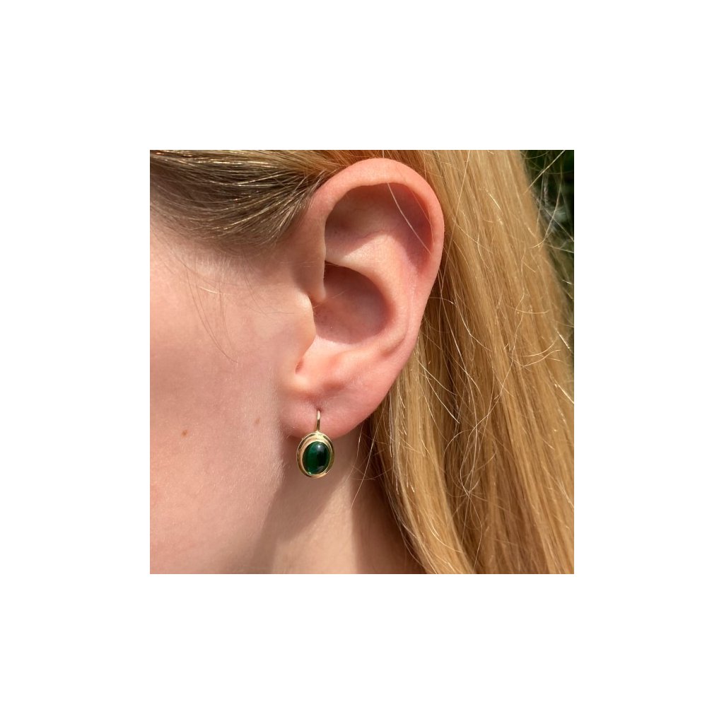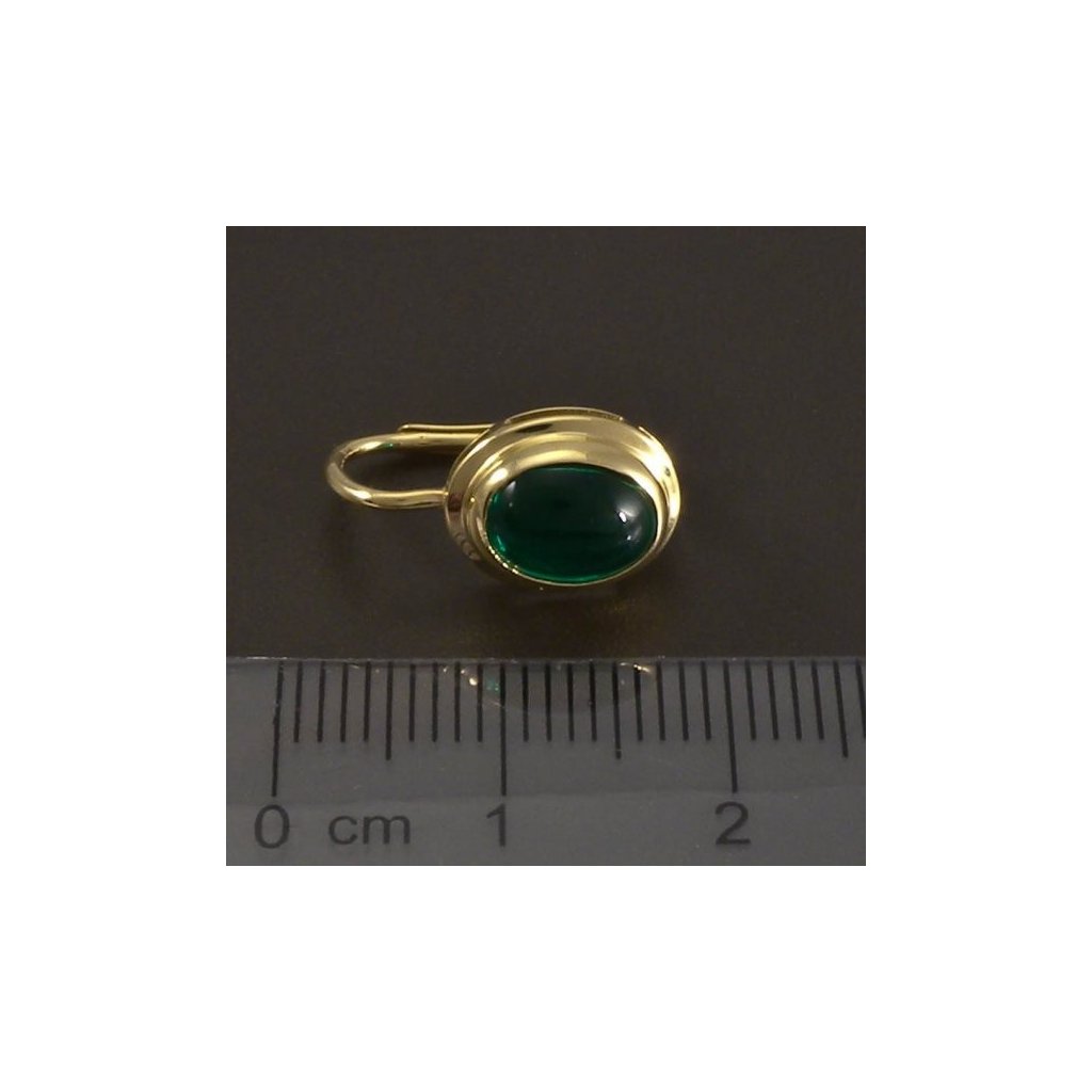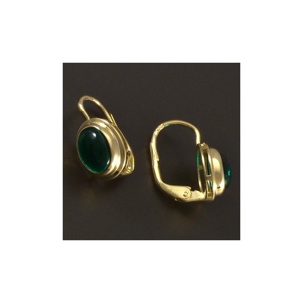 Zlaté náušnice se syntetickými smaragdy představují šperk, který působí žensky a sofistikovaně. Smaragdová zelená je spojována s vitalitou a obnovou, což z těchto náušnic dělá doplněk s hlubším významem. Jemně broušené ovály v hladkém zlatém rámečku vytvářejí vyvážený kontrast a podtrhují krásu kamene. Náušnice mají patentové zapínání, které je oblíbené pro svou spolehlivost a komfort. Jsou ideální volbou pro ženy, které hledají šperk se silným vizuálním dojmem a symbolikou.