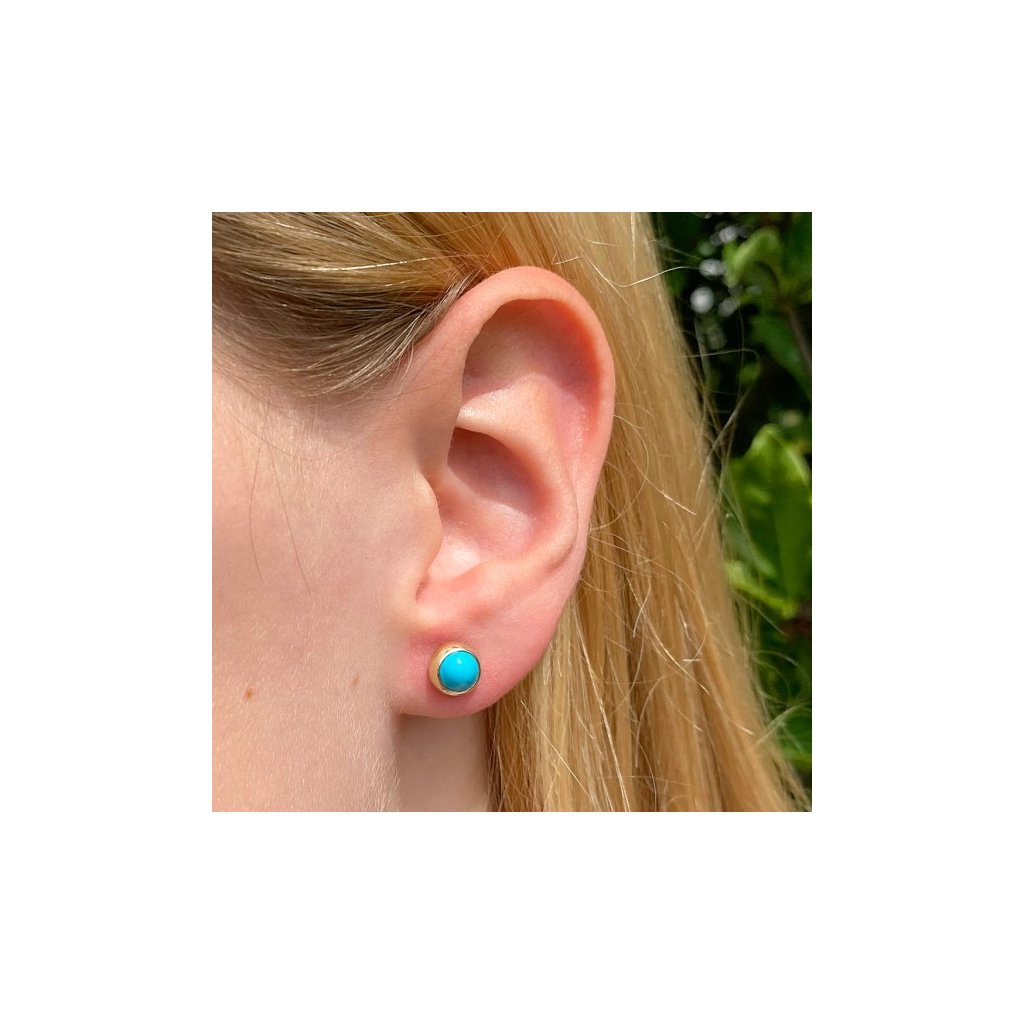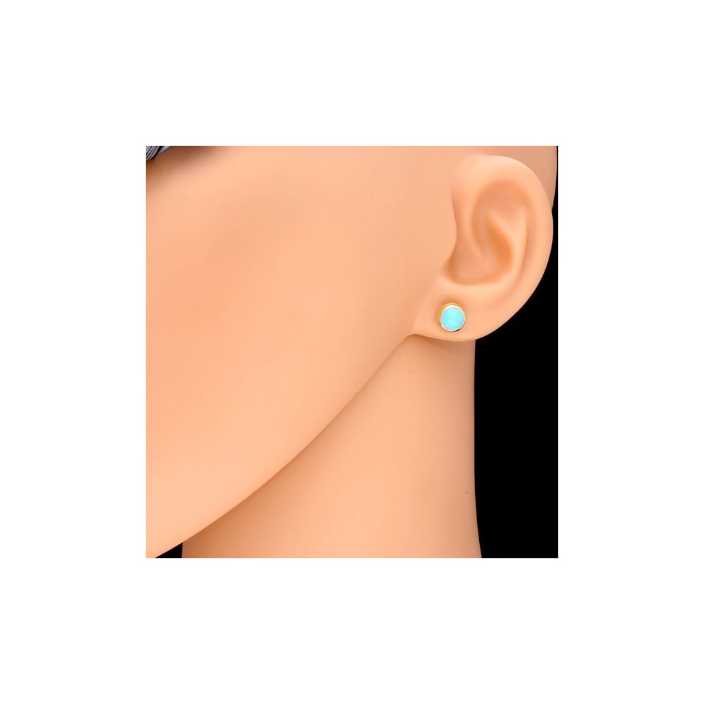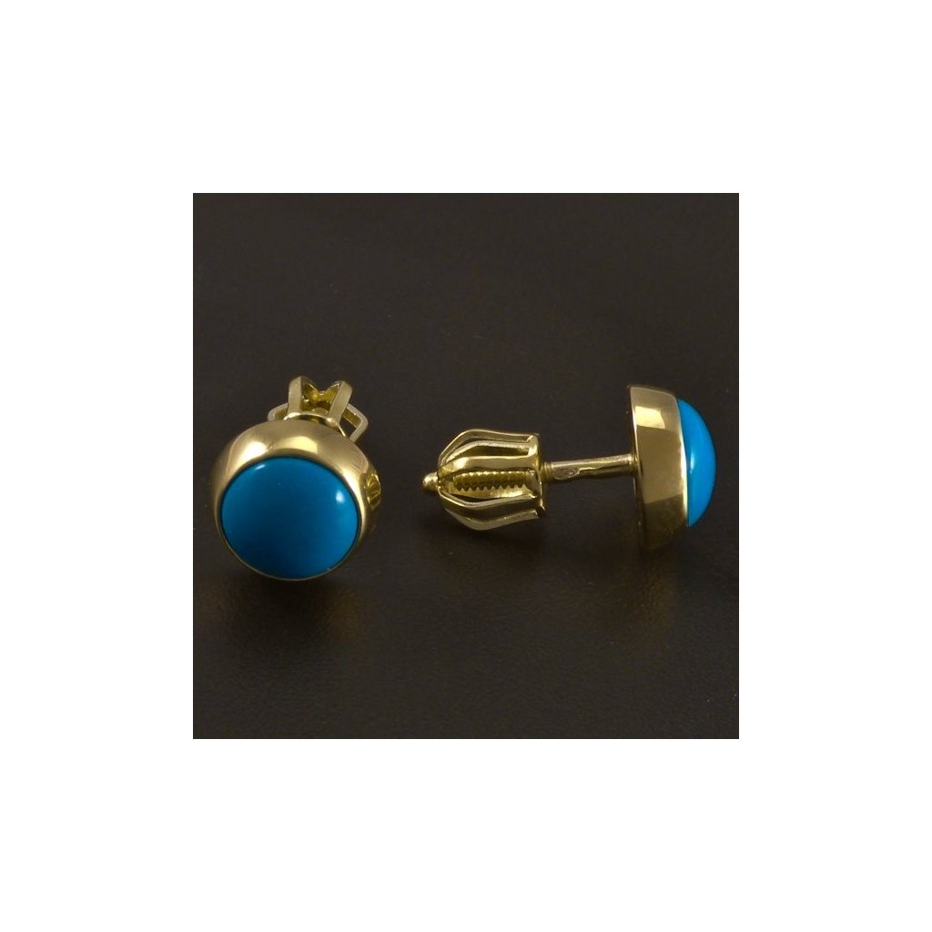 Náušnice jsou vyrobeny ze žlutého zlata ryzosti 14kt. 585/1000. Zlaté náušnice jsou v lesklém hladkém provedení a mají šrozbkový uzávěr. Náušnice zlaté kulaté pecky jsou osazeny krásným modrým tyrkysem o průměru 5,50 mm. Průměr celé náušnice je 7,50 mm. Nadčasové zlaté náušnice s tyrkysy jsou vhodné pro každý den. Doporučujeme.