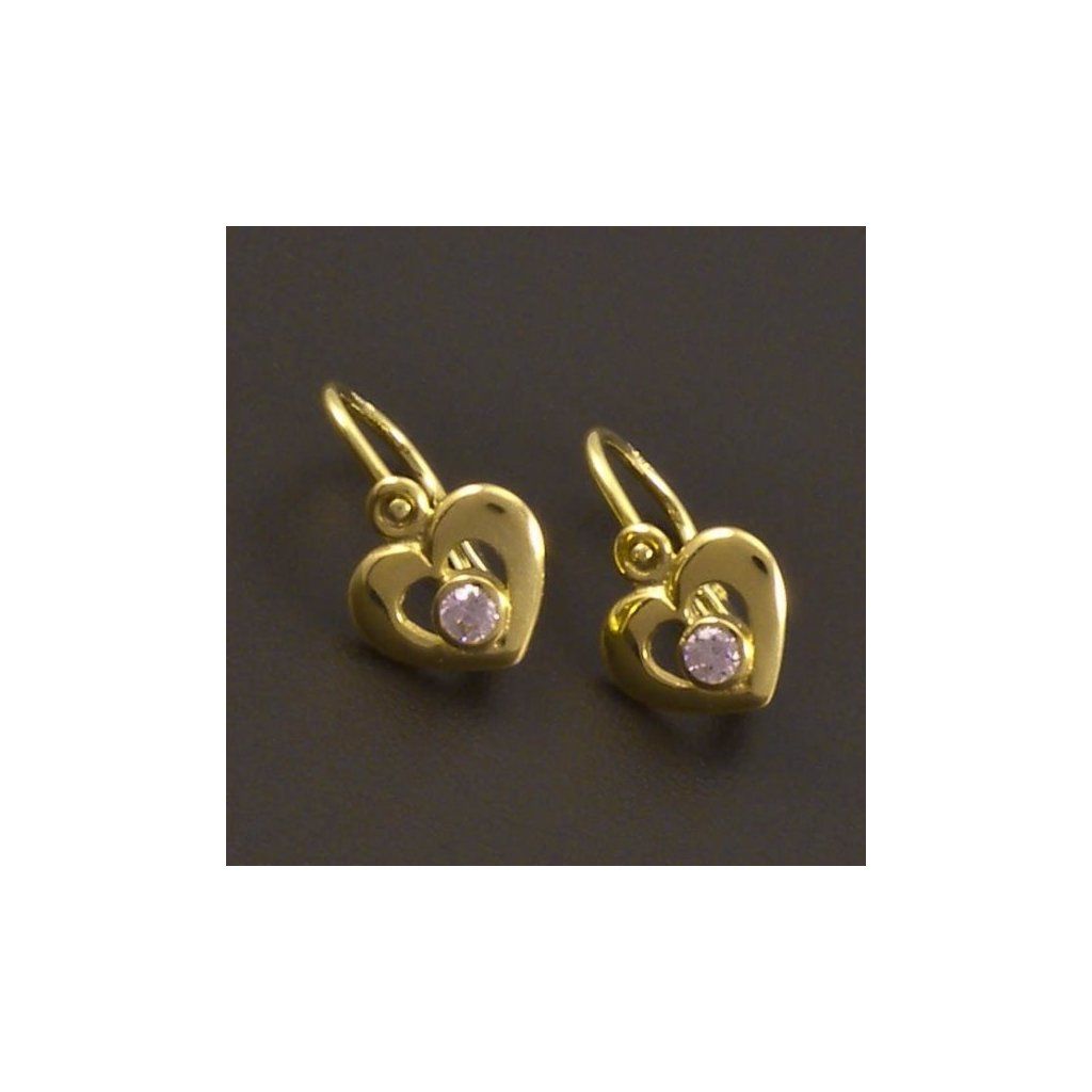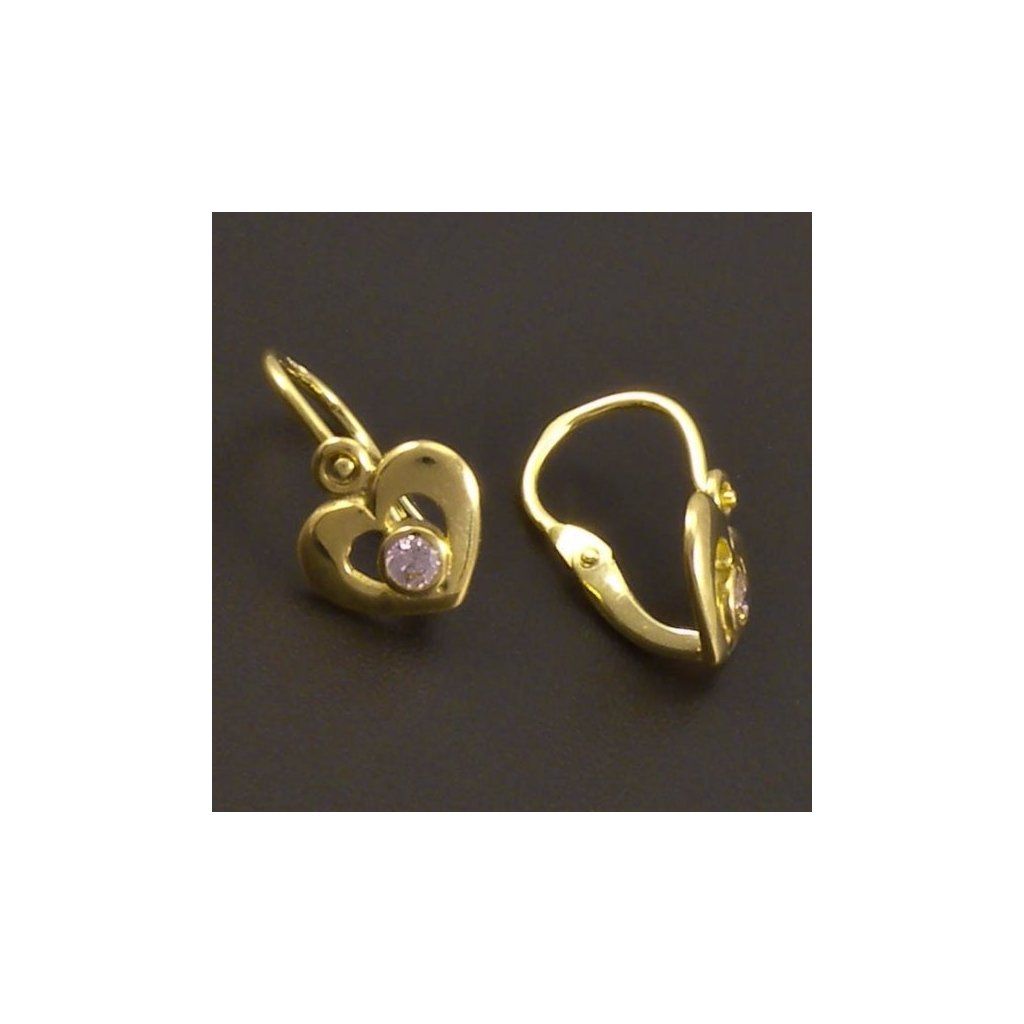 Náušnice jsou vyrobeny ze žlutého zlata ryzosti 14 karátů 585/1000. Zlaté dětské náušnice ve tvaru srdce jsou v hladkém lesklém provedení a jsou osazeny kulatým růžovým zirkonem o průměru 2,5 mm. Náušničky mají klasické dětské zapínání. Velikost celé náušnice je 12x7,5 mm. Tento zlatý šperk je kvalitně vyroben v České republice.