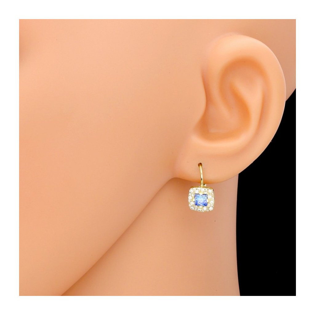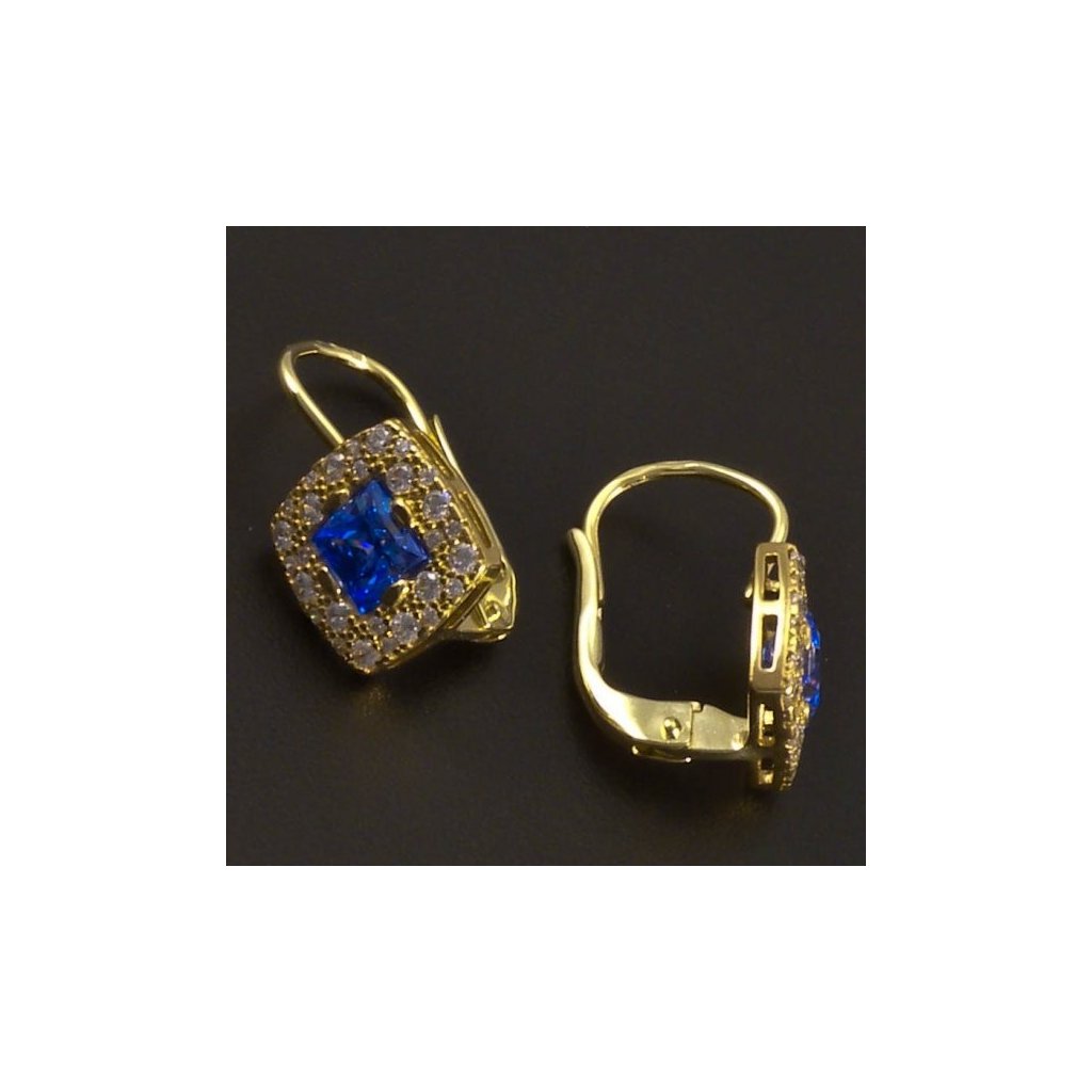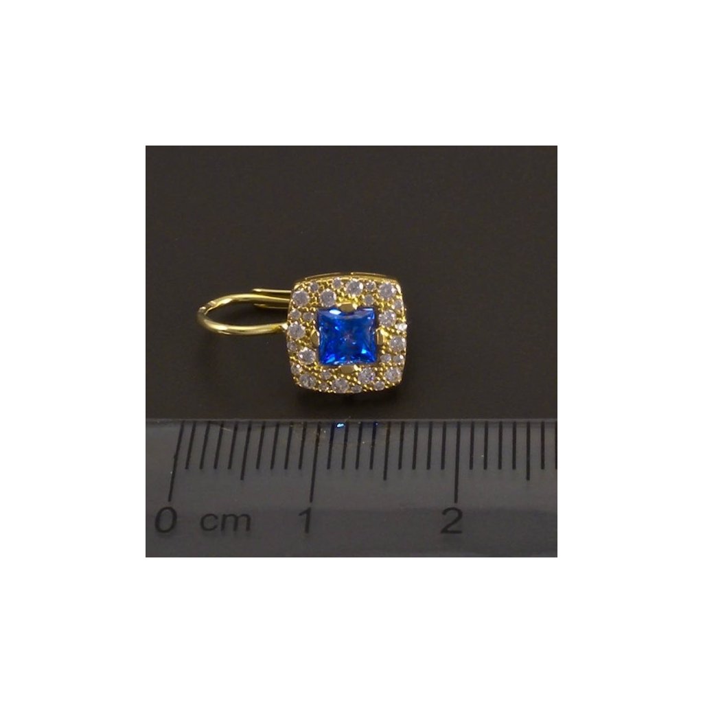 Elegantní náušnice ze žlutého zlata jsou osazeny syntetickým akvamarínem, doplněným o drobné čiré zirkony po stranách, které dodávají celému šperku luxusní nádech. Třpytivé zirkony zvýrazňují jemně modrý odstín akvamarínu a celkový vzhled působí moderně a zároveň nadčasově. Patentové zapínání je pohodlné a bezpečné, ideální pro každodenní nošení i formální příležitosti – šperk, který spojuje klid, barvu i jemný lesk.
