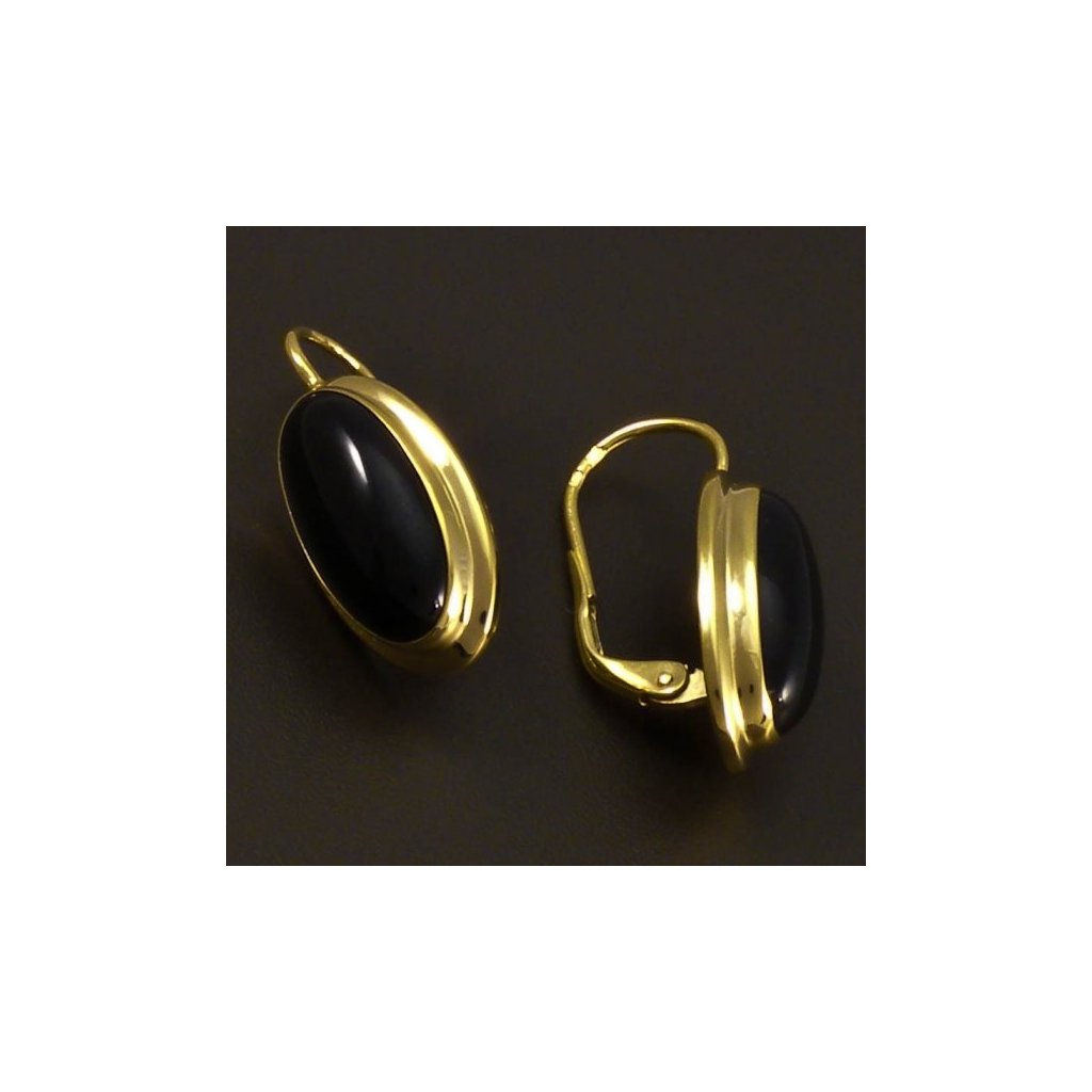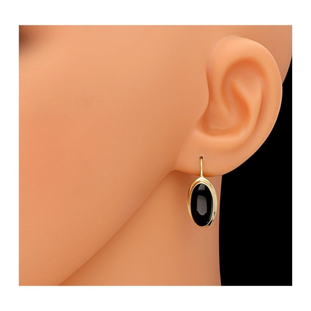 Tyto dámské náušnice jsou vyrobeny ze žlutého zlata a zdobí je lesklé černé onyxy, které zaujmou svou hlubokou barvou a čistým vzhledem. Onyx je často spojován s intenzitou, ochranou a vnitřní silou, což dodává šperku i symbolickou hloubku. Design náušnic je jednoduchý a elegantní – hladký zlatý rám obepíná kámen jemně a pevně, čímž zdůrazňuje jeho čistou linii a krásu. Díky svému nadčasovému stylu se tento model hodí jak pro běžné nošení, tak i pro formální příležitosti.