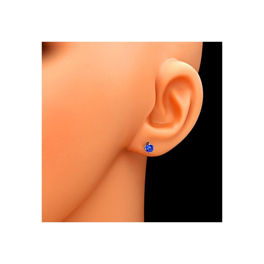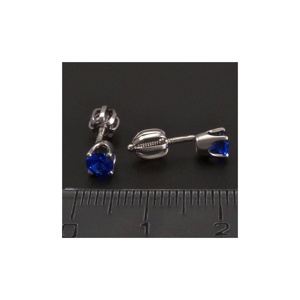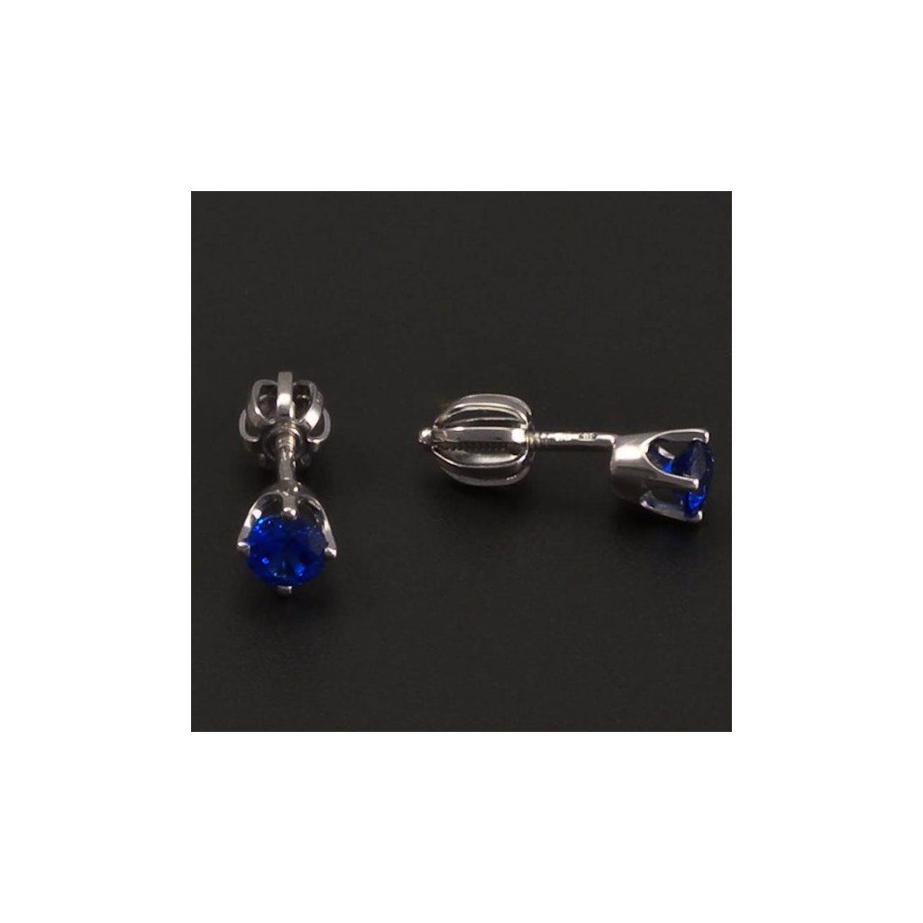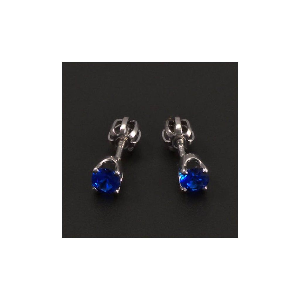 Zlaté náušnice jsou vyrobeny z bílého zlata ryzosti 14kt 585/1000. Jednoduché nadčasové náušnice jsou osazeny krásným synt. safírem tmavěmodré barvy. Průměr kamene je 4mm. Tyto zlaté náušnice mají šroubkový uzávěr se závitem. Zlaté náušnice jsou kvalitně zhotoveny v České republice.