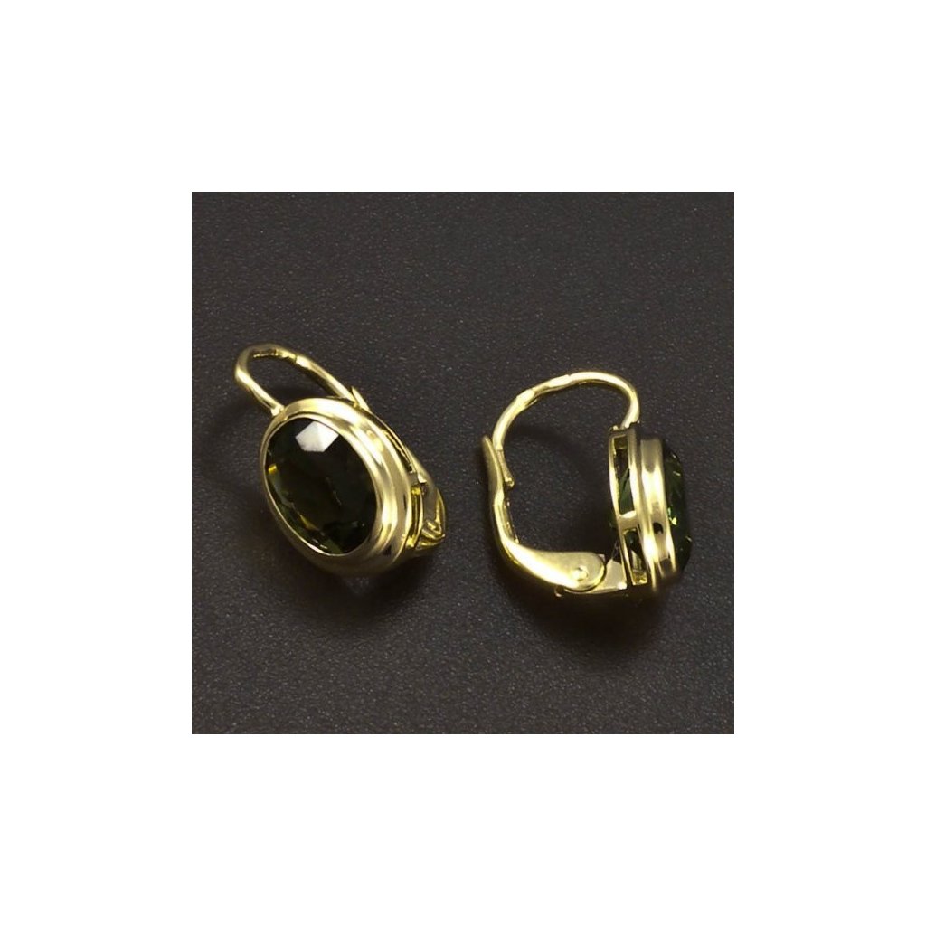 Zlaté náušnice s vltavínem