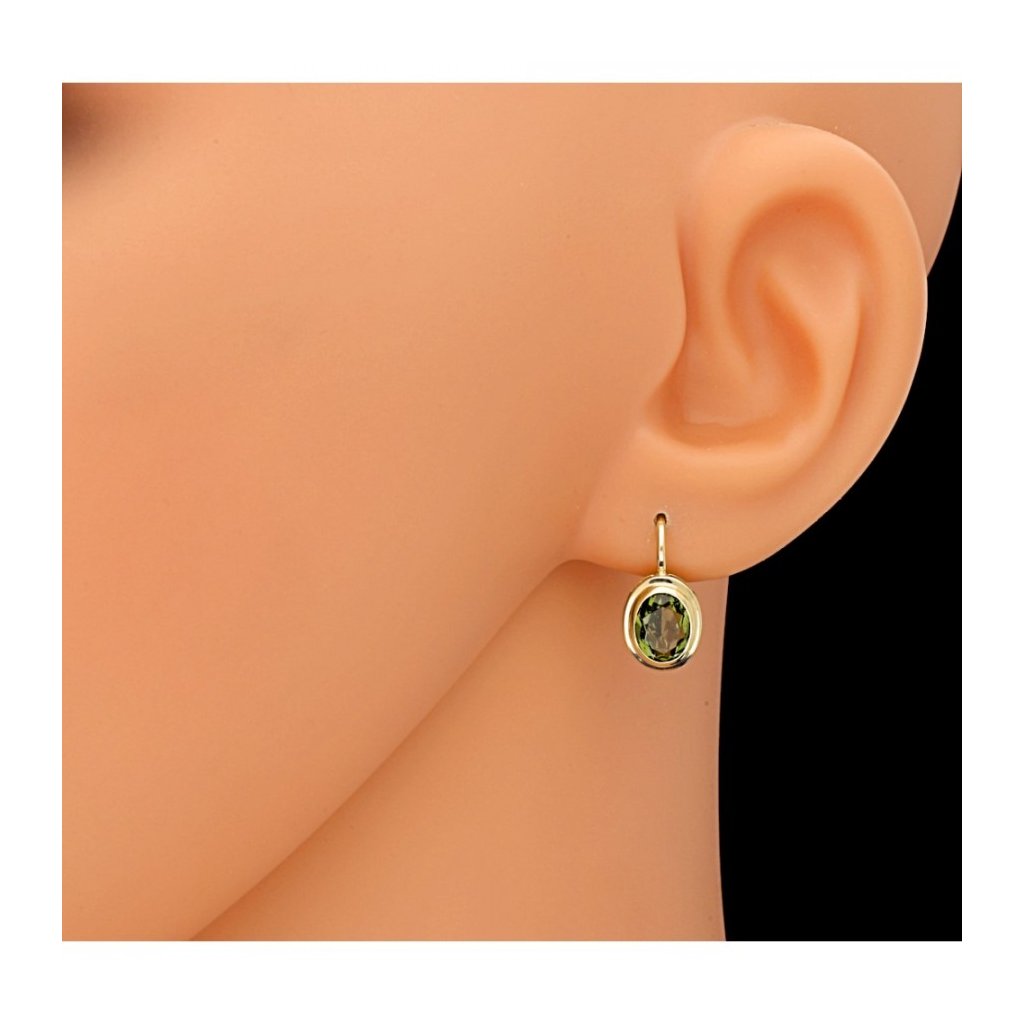 Elegantní náušnice ze žlutého zlata zdobí oválné přírodní vltavíny – unikátní české kameny, které vznikly před miliony let při dopadu meteoritu. Typická zelená barva a přírodní charakter dělají z těchto náušnic originální doplněk s hlubokým významem. Zlaté obruby nechávají vyniknout přirozenou krásu kamene a vytvářejí harmonický kontrast. Patentové zapínání je praktické a vhodné pro každodenní nošení. Šperk je ideální jako dárek nebo jako výjimečný doplněk s osobní hodnotou.