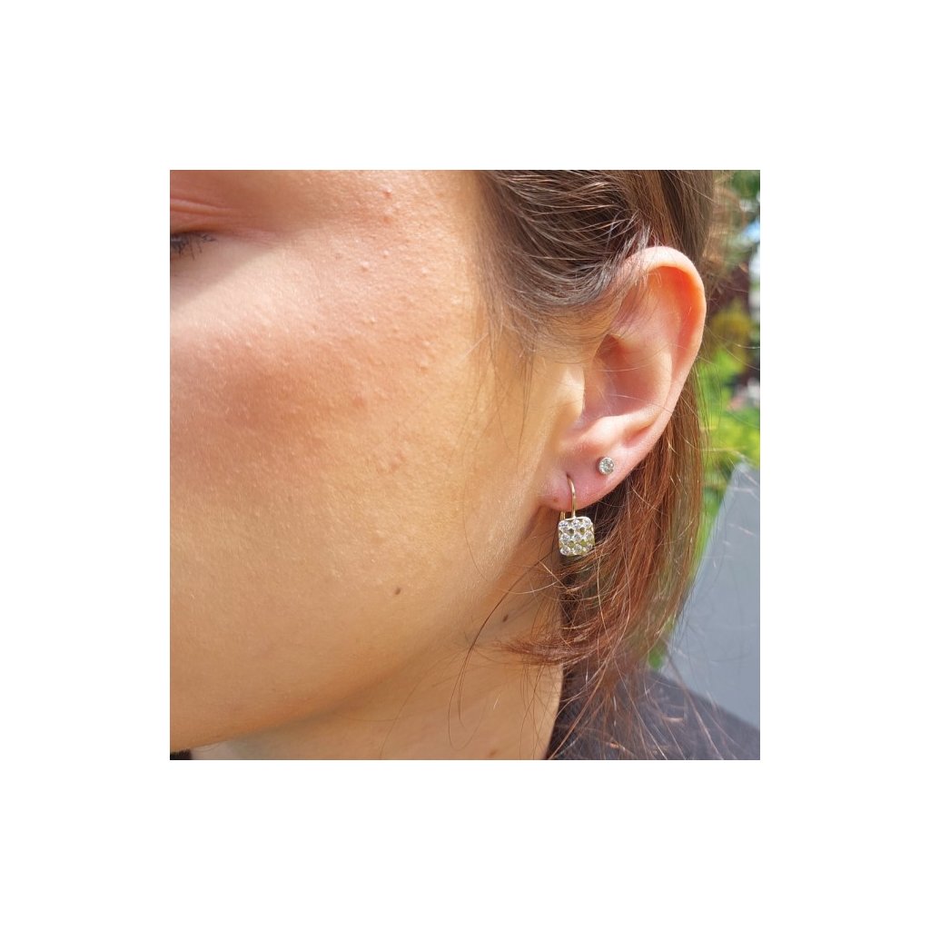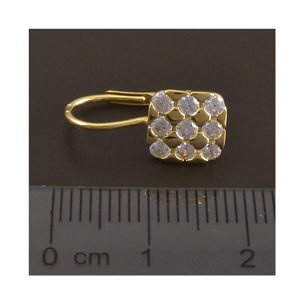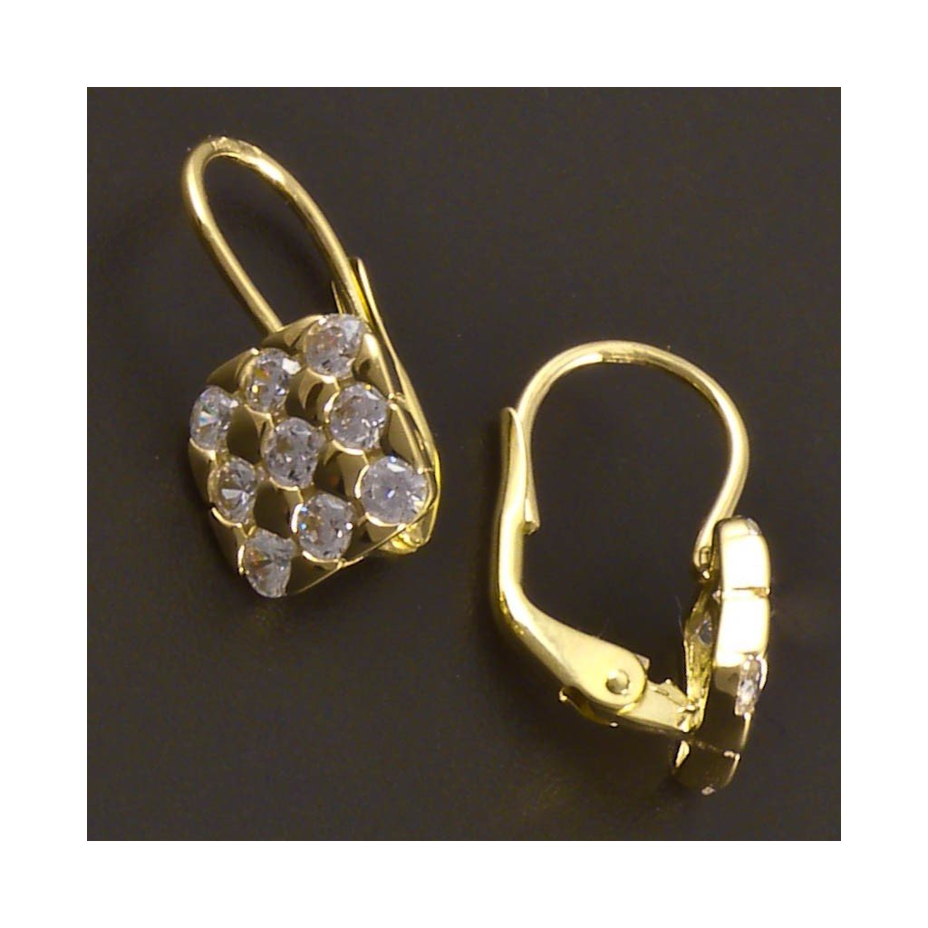 Zlaté náušnice se zirkony jsou šperkem, který kombinuje moderní styl a tradiční eleganci. Zirkony jsou uspořádány do kompaktního tvaru, který působí výrazně, ale stále zachovává jemnost. Díky žlutému zlatu získávají náušnice teplý tón, který zvýrazňuje přirozenou krásu nositelky. Patentové zapínání zajišťuje bezpečné nošení a pohodlí, takže se hodí nejen na slavnostní události, ale i na každodenní nošení. Náušnice se snadno kombinují s dalšími zlatými šperky a stanou se oblíbeným kouskem vaší šperkovnice.
