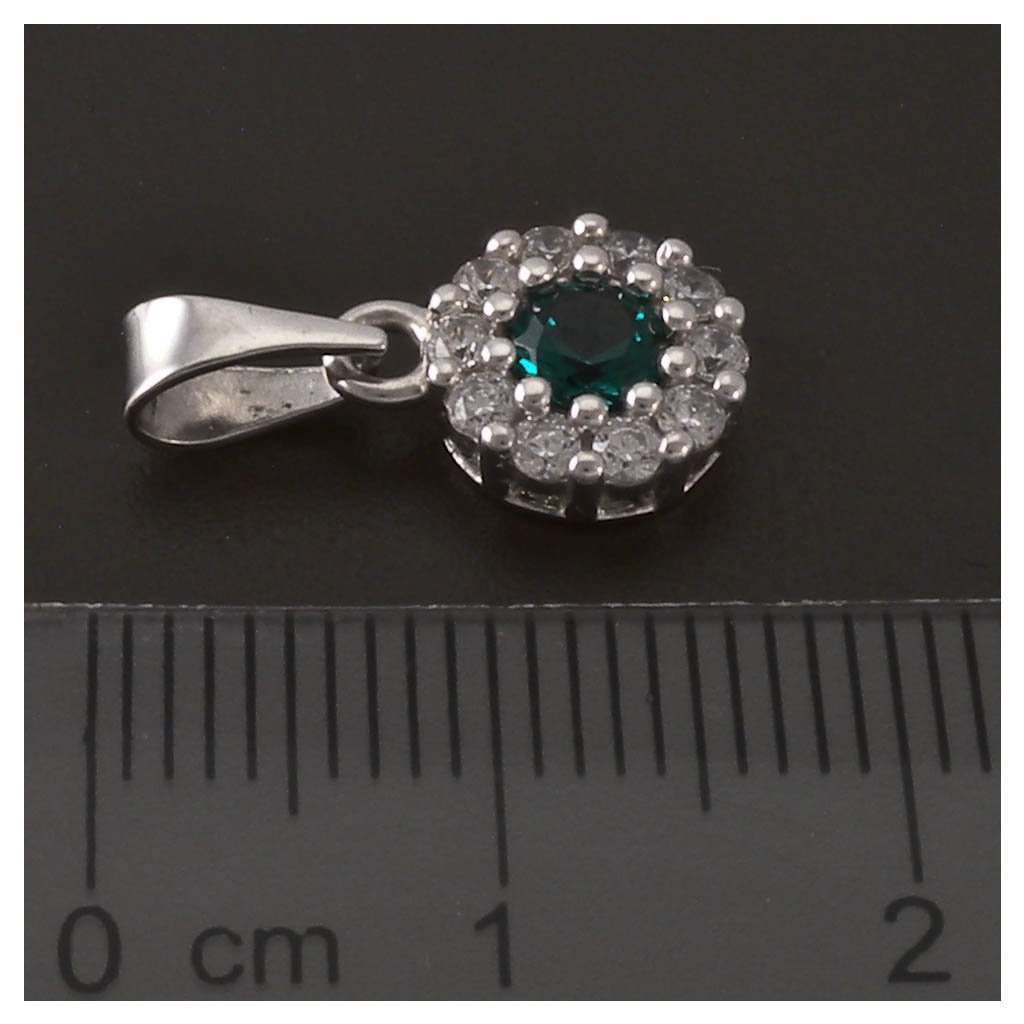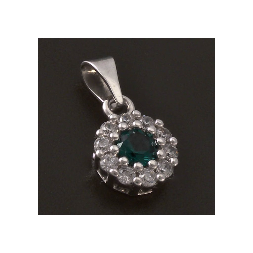 Kulatý stříbrný přívěsek smaragd a zirkony
