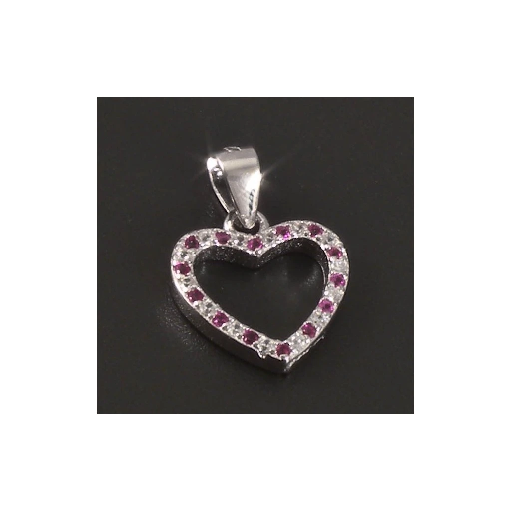 Přívěšek stříbrné srdíčko s rubíny a zirkony